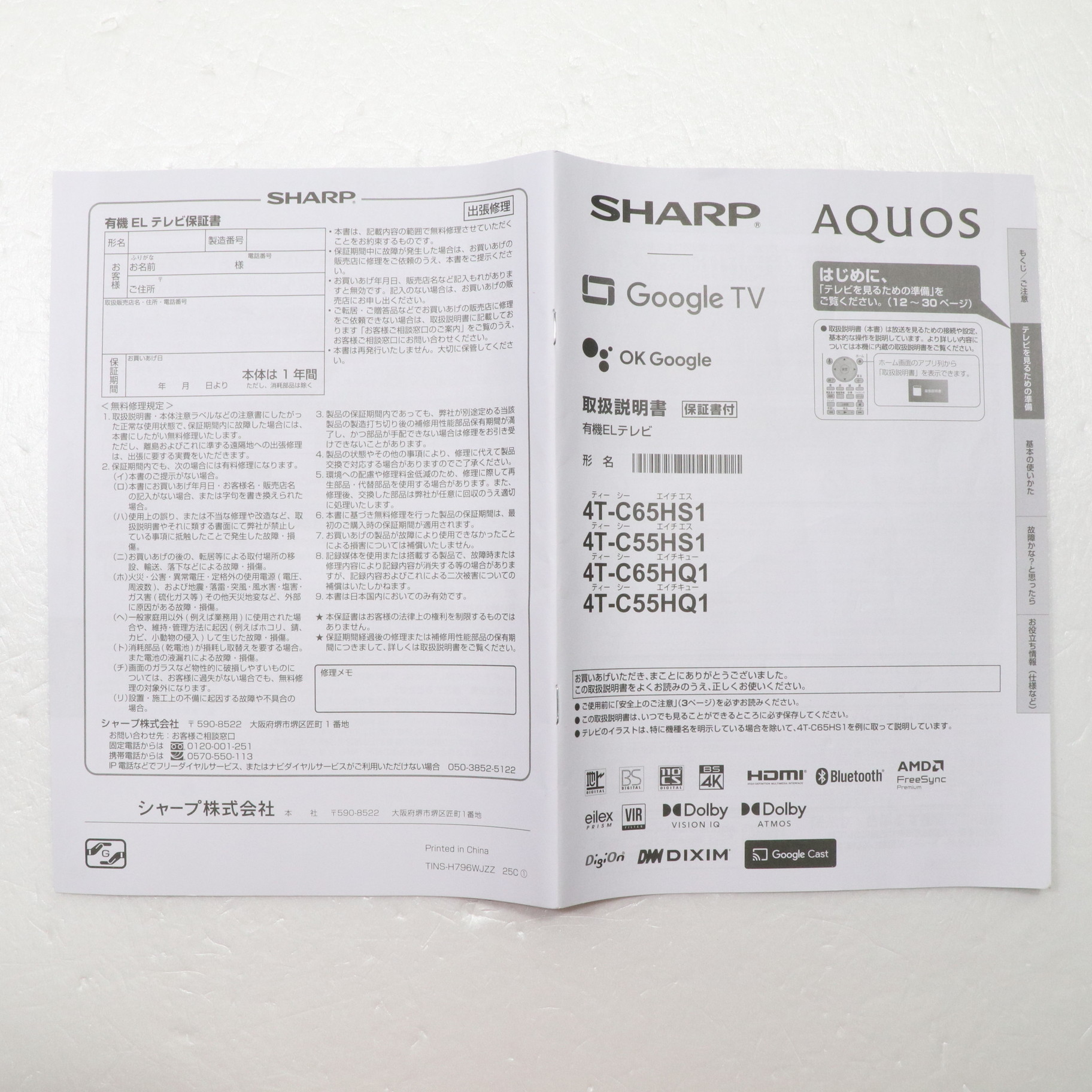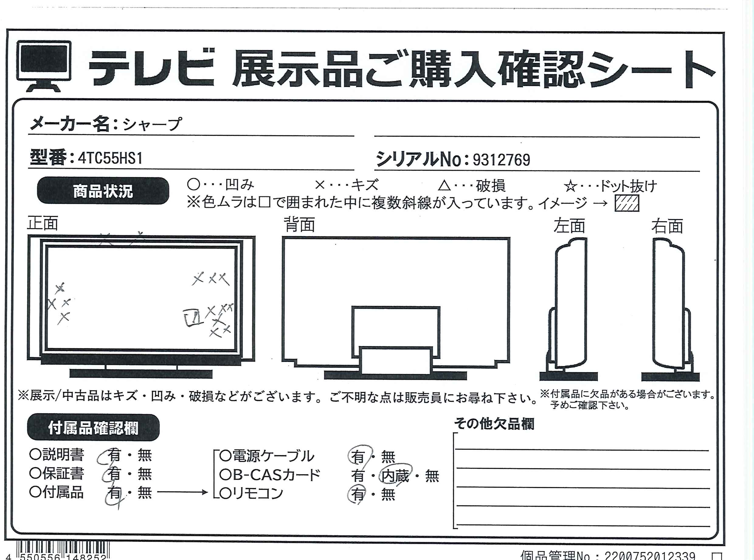 ▼同型番の新品商品はこちら![]() SHARP(シャープ) 有機ELテレビ AQUOS 4T-C55HS1 [55V型 /Bluetooth対応 /4K対応 /BS・CS 4Kチューナー内蔵 /YouTube対応] ¥319,770(税込) 0ポイントサービス 在庫あり |