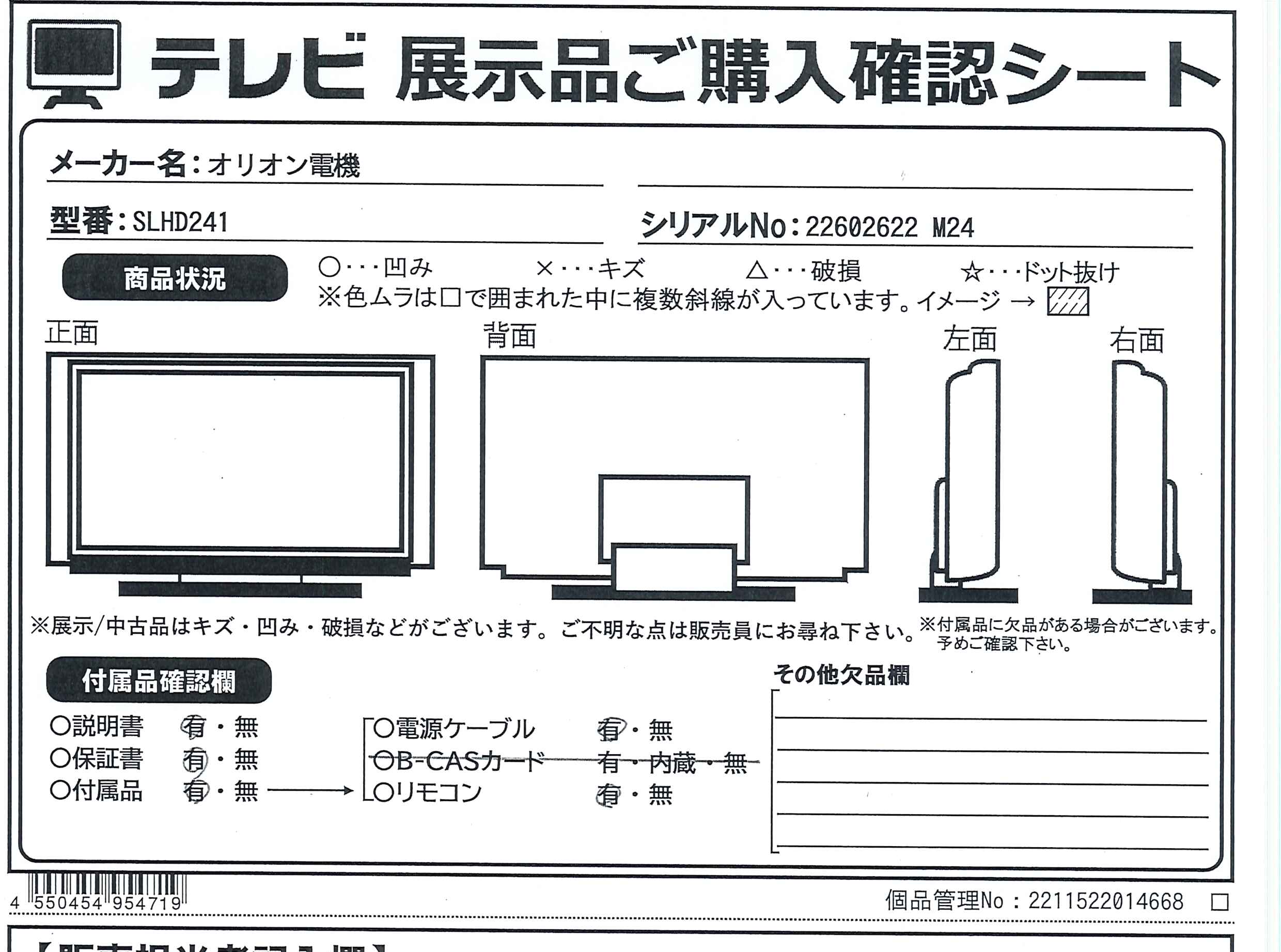 壁掛け用穴(テレビ背面側):200 x 100mm