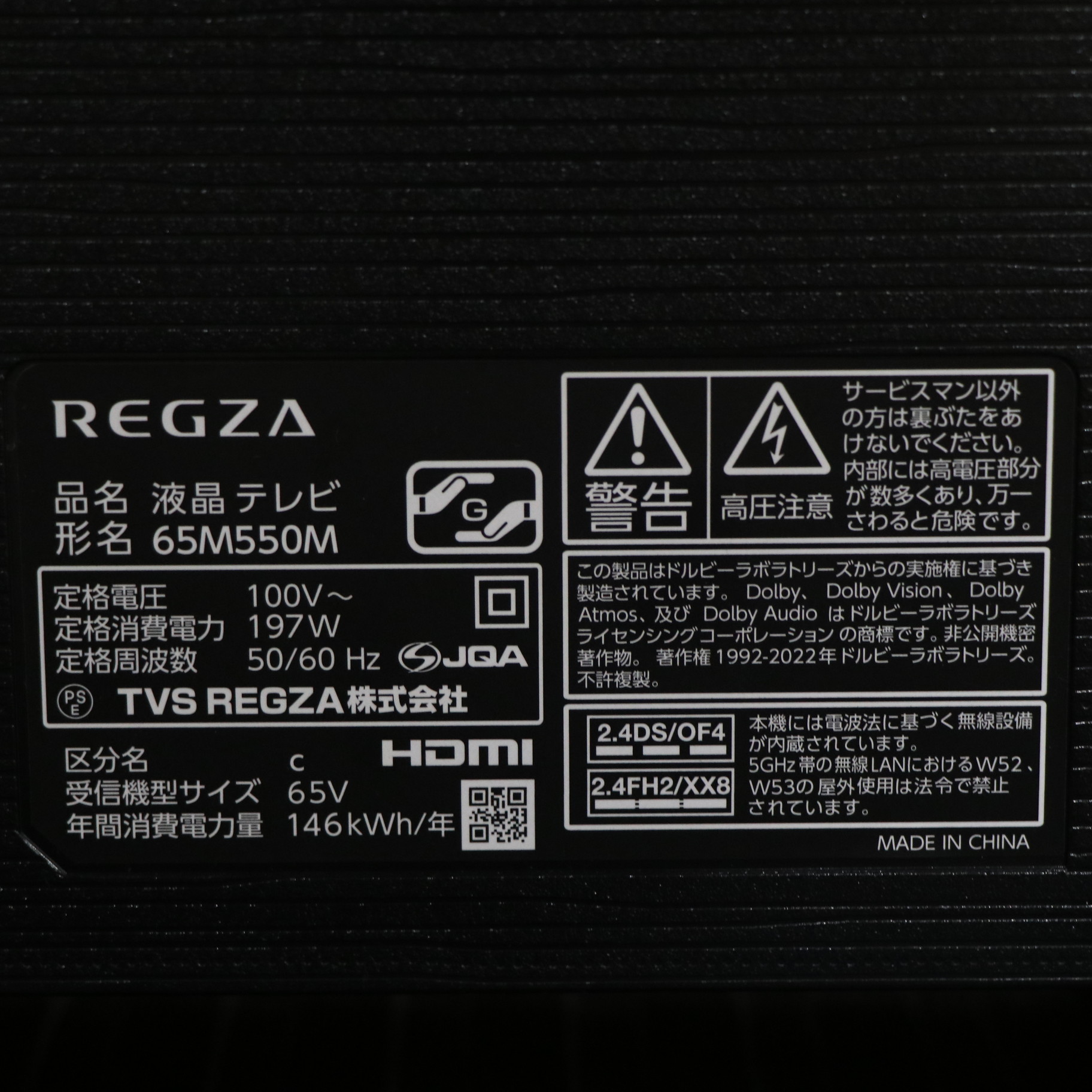 〔展示品〕 液晶テレビ REGZA(レグザ) 65M550M [65V型 /Bluetooth対応 /4K対応 /BS・CS 4Kチューナー内蔵 /YouTube対応]