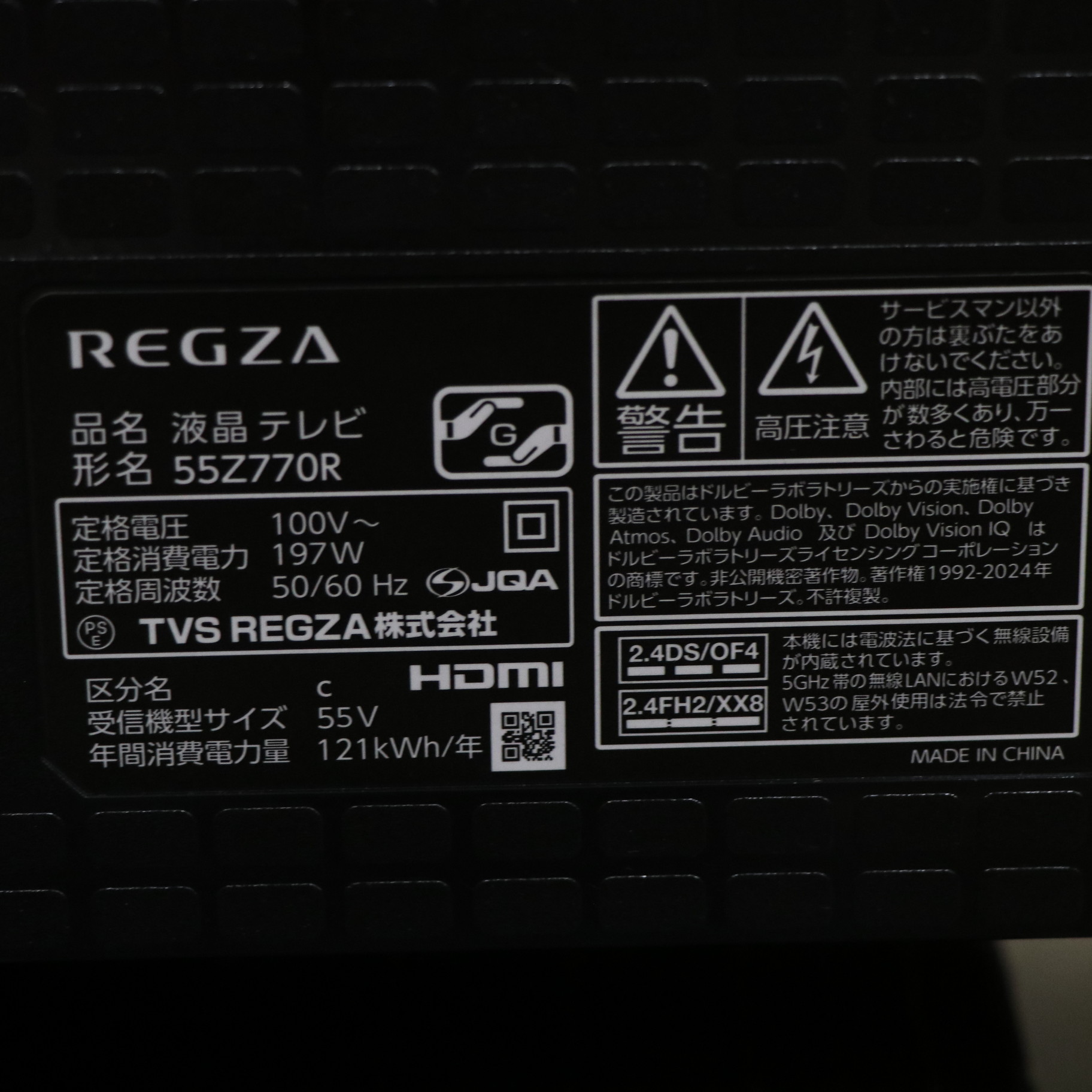 〔展示品〕 液晶テレビ REGZA(レグザ) 55Z770R [55V型 /4K対応 /BS・CS 4Kチューナー内蔵 /YouTube対応]