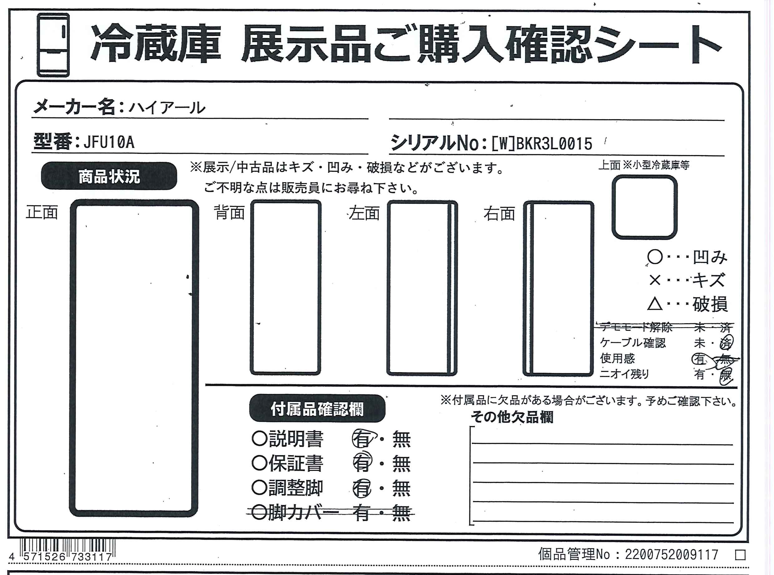 中古商品ランクについて 付属品・商品状態について 〔付属品〕取扱説明書、調節脚×2、トレイ、バスケット(上)、バスケット(中)、バスケット(下)、ガラス棚(大)×2、ガラス棚(小)、ヘラ(霜取り用)