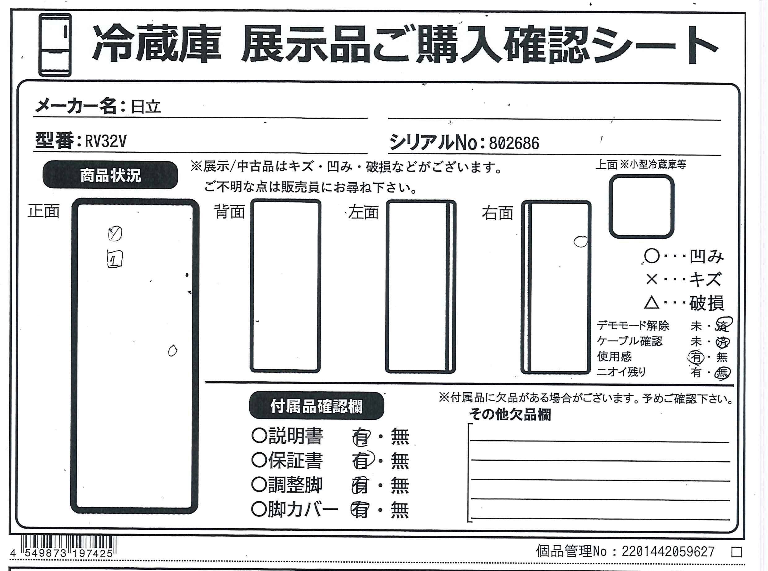 中古商品ランクについて 付属品・商品状態について 〔付属品〕説明書、調節脚X2、脚カバー、小物ケース、卵スタンド、給水タンク、製氷スコップ、蒸発皿