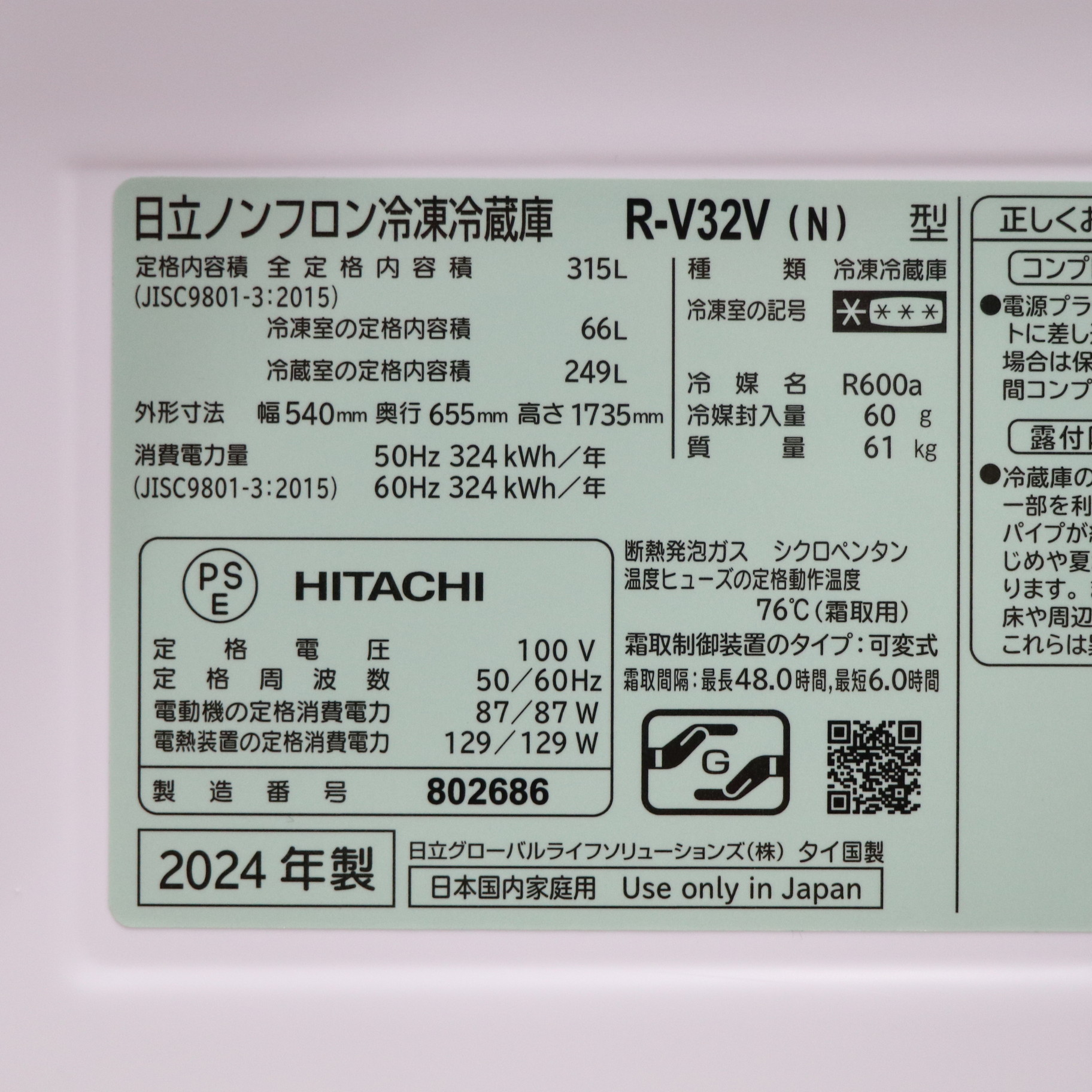 〔展示品〕 冷蔵庫 Vタイプ ライトゴールド R-V32V-N [幅54cm /315L /3ドア /右開きタイプ /2024年]