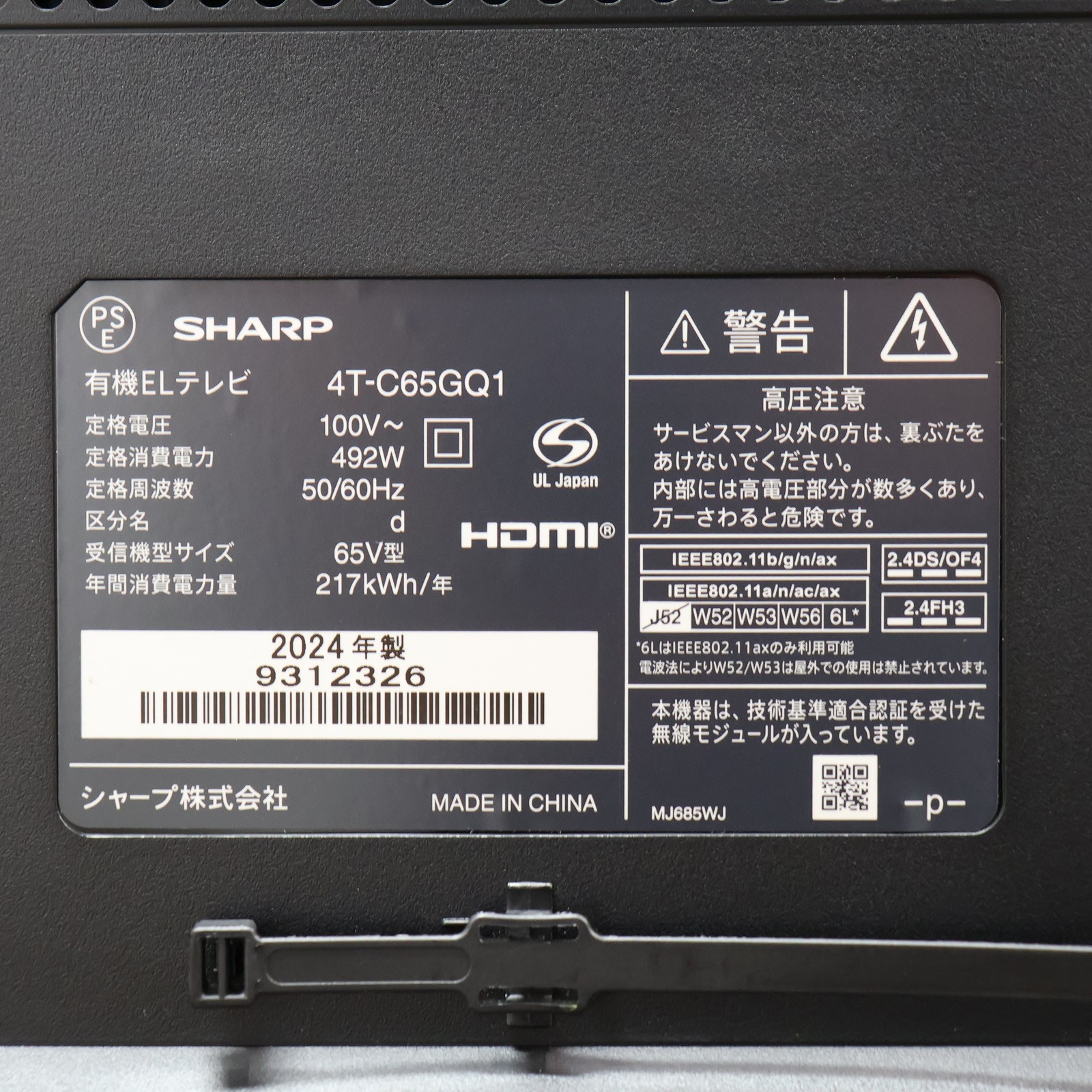 〔展示品〕 有機ELテレビ AQUOS ブラック 4T-C65GQ1 (色ムラ大)[65V型 /Bluetooth対応 /4K対応 /BS・CS 4Kチューナー内蔵 /YouTube対応]