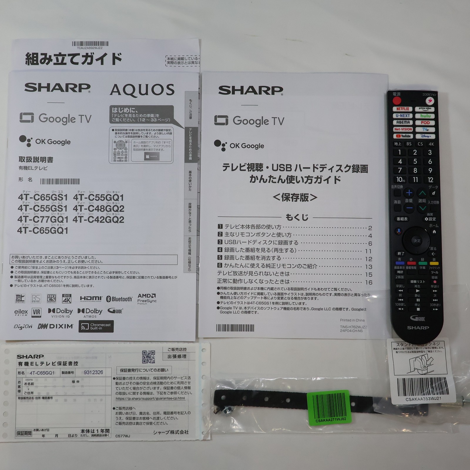 中古商品ランクについて 付属品・商品状態について 〔付属品〕説明書、かんたん使い方ガイド、リモコン、スタンド一式、スタンドカバー、転倒防止ベルト一式、スタンド回転ロックネジ