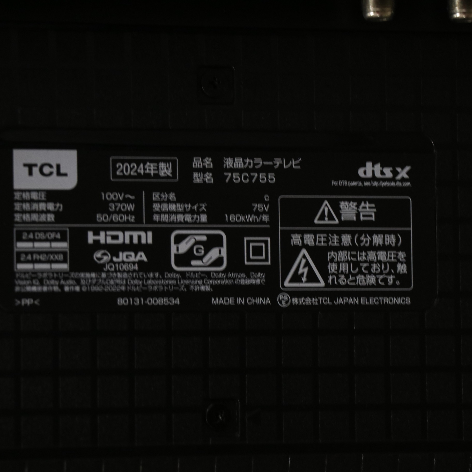 〔展示品〕 液晶テレビ 75C755 [75V型 /Bluetooth対応 /4K対応 /BS・CS 4Kチューナー内蔵 /YouTube対応]