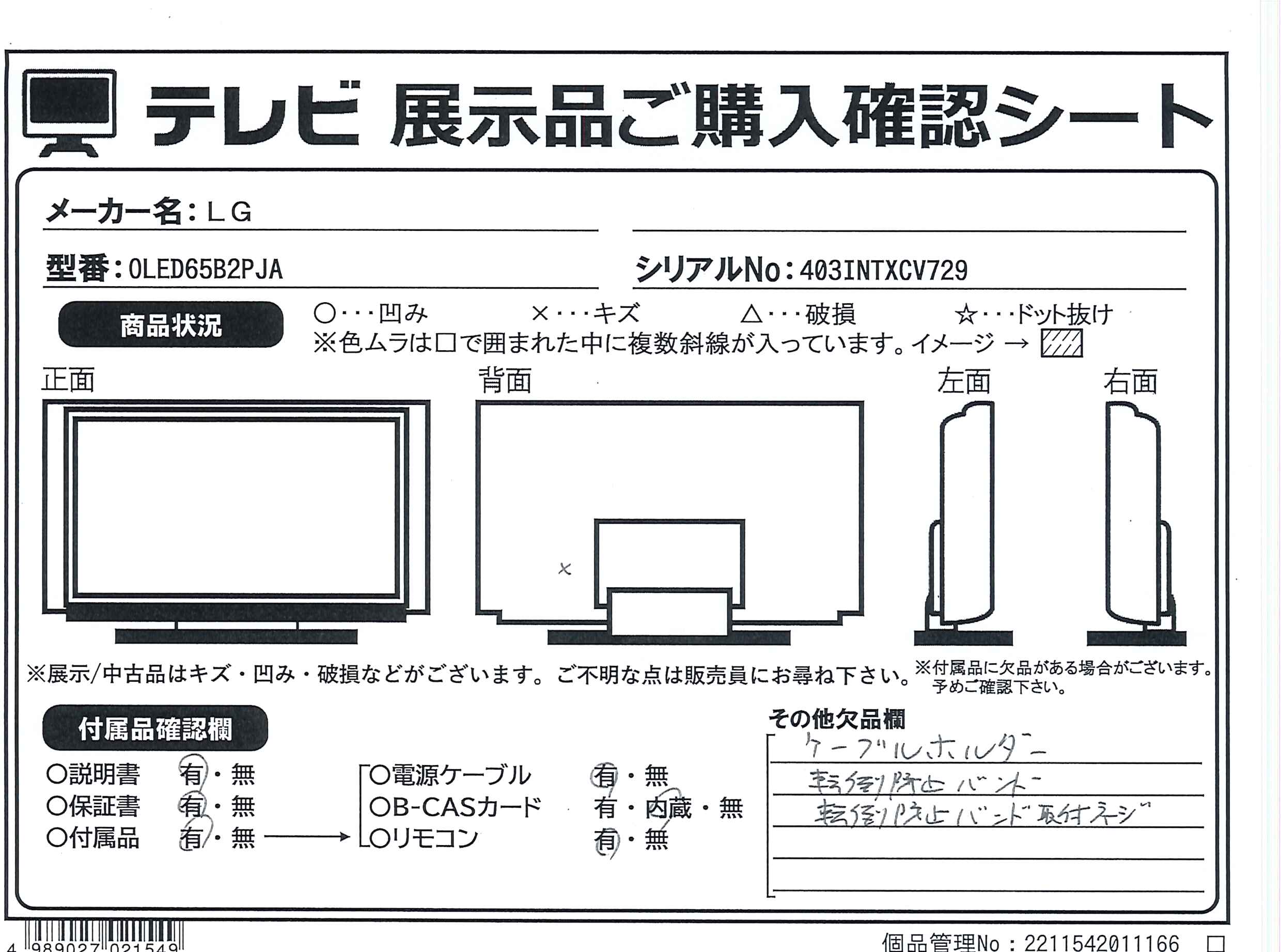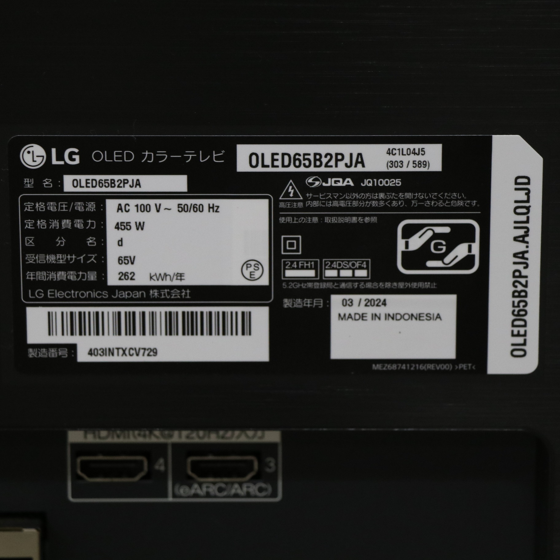 〔展示品〕 有機ELテレビ OLED TV(オーレッド・テレビ) OLED65B2PJA [65V型 /Bluetooth対応 /4K対応 /BS・CS 4Kチューナー内蔵 /YouTube対応]