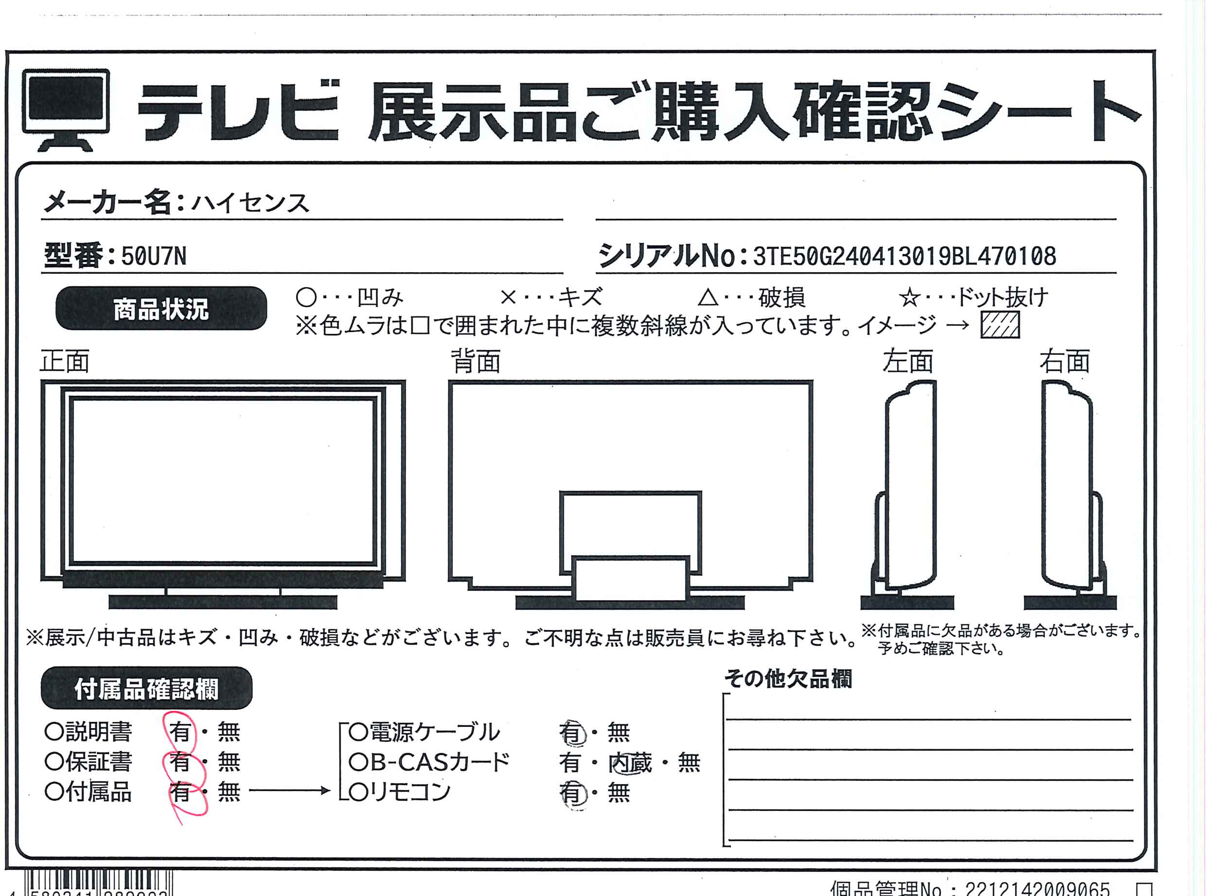 中古商品ランクについて 付属品・商品状態について 〔付属品〕取扱説明書、電源コード、単三型乾電池×2、リモコン(ERF3D46H)、転倒防止用ベルト、ねじ(ST4×25mm)、ねじ(M6×12mm)、スタンド×2、ねじ(M5×12mm)×4