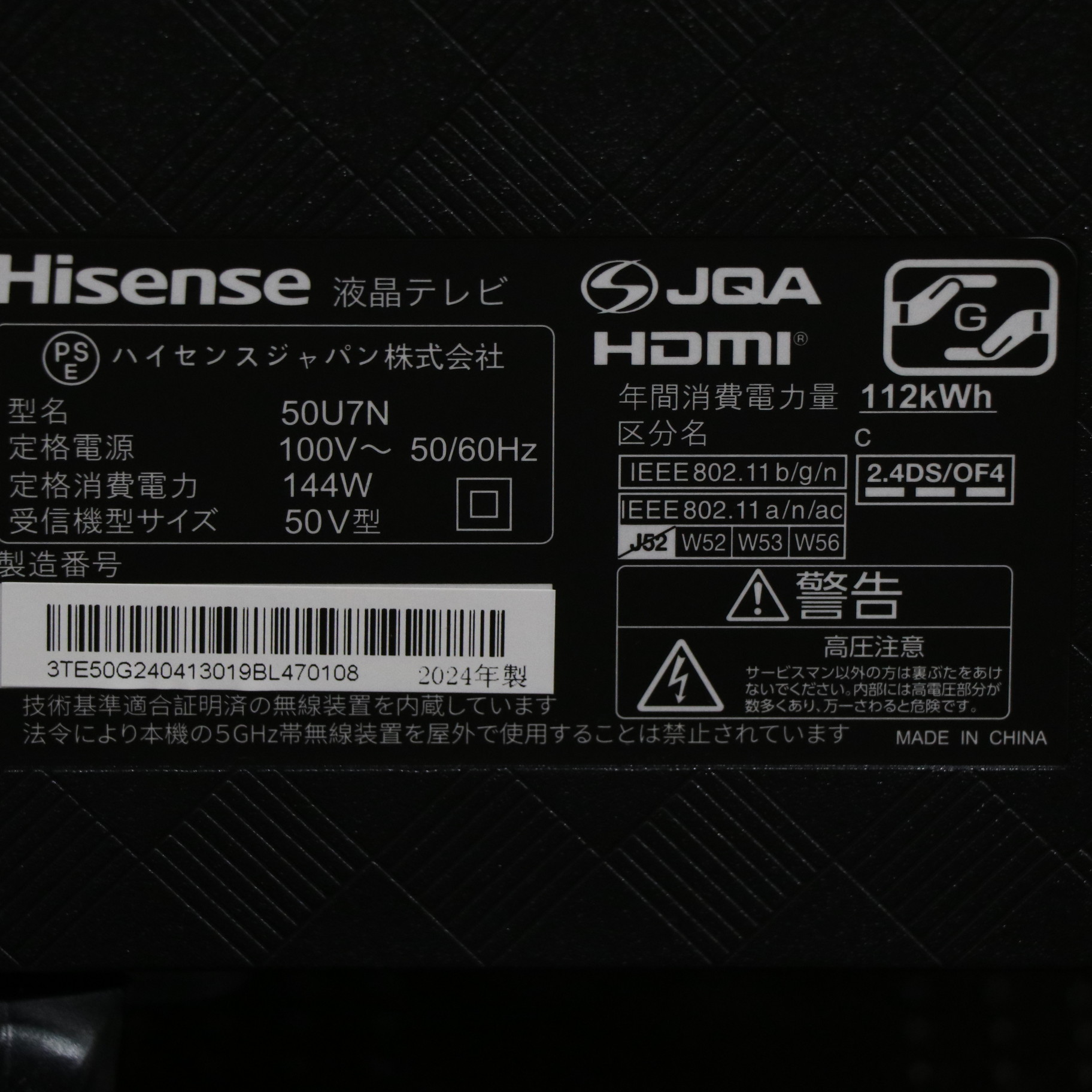 〔展示品〕 液晶テレビ 50U7N [50V型 /Bluetooth対応 /4K対応 /BS・CS 4Kチューナー内蔵 /YouTube対応]