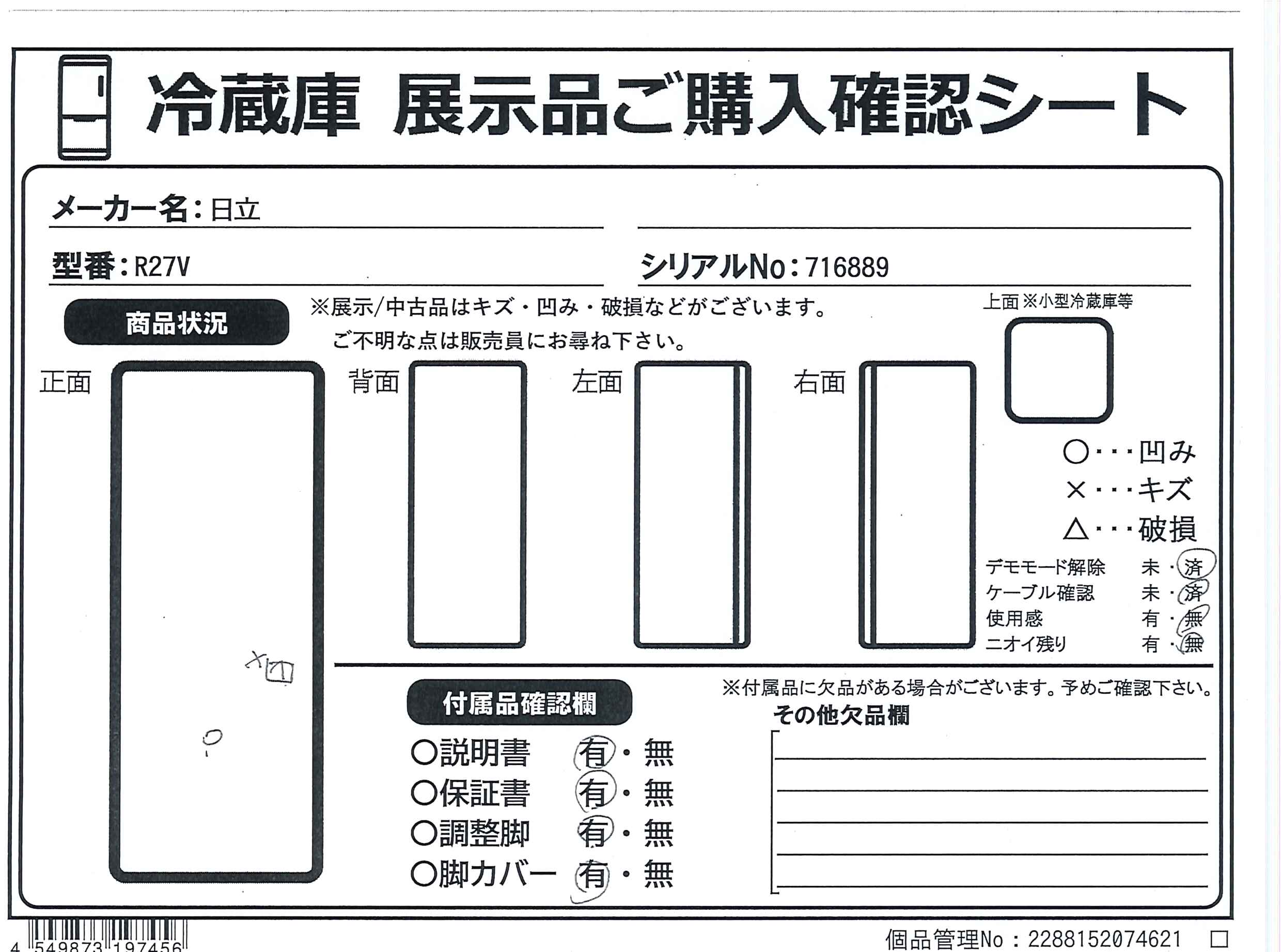 中古商品ランクについて 付属品・商品状態について 〔付属品〕説明書、調整脚×2、卵スタンド、製氷皿、貯氷ケース、蒸発皿、脚カバー