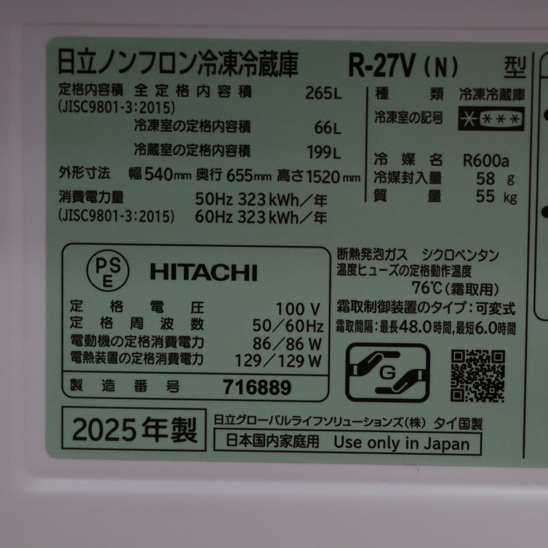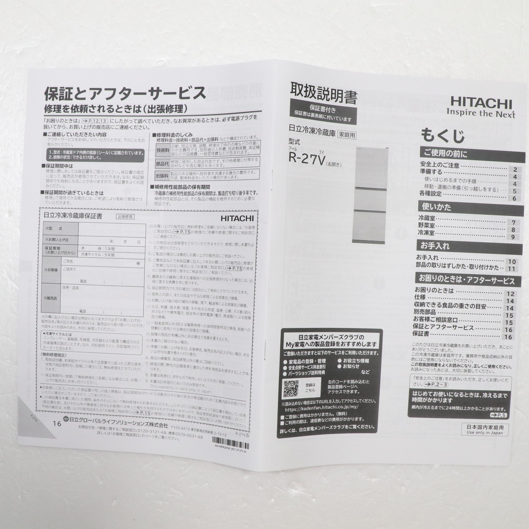 〔展示品〕 冷蔵庫 ライトゴールド R-27V-N [幅54cm /265L /3ドア /右開きタイプ /2024年]