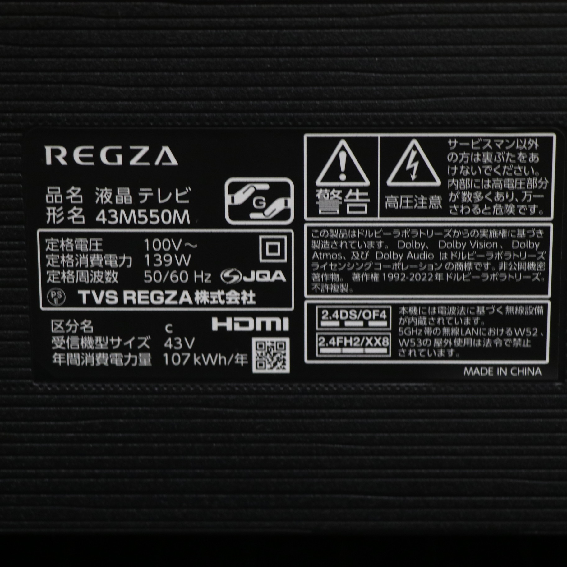 〔展示品〕 液晶テレビ REGZA(レグザ) 43M550M [43V型 /Bluetooth対応 /4K対応 /BS・CS 4Kチューナー内蔵 /YouTube対応]