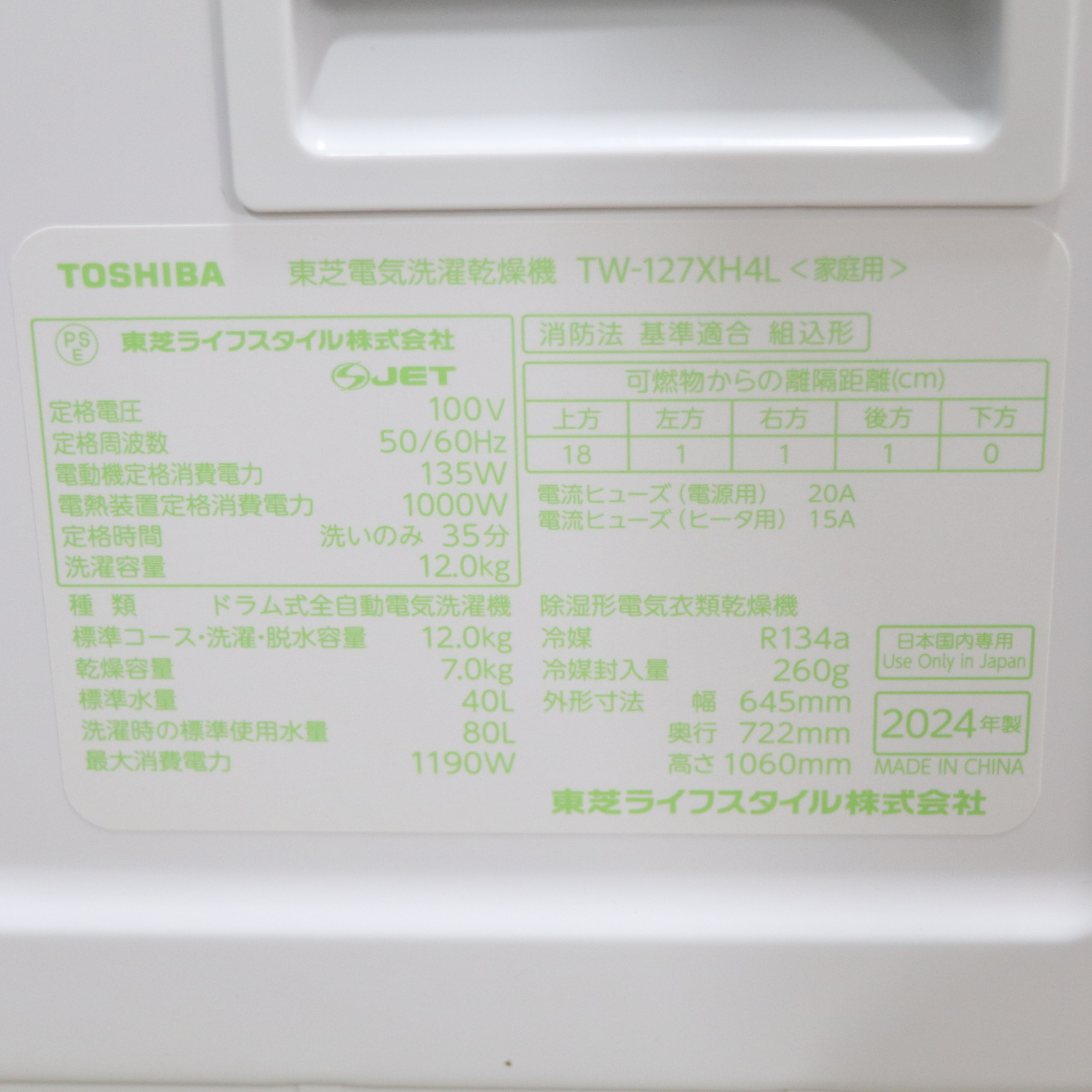 〔展示品〕 ドラム式洗濯乾燥機 ZABOON グランホワイト TW-127XH4L(W) [洗濯12.0kg /乾燥7.0kg /ヒートポンプ乾燥 /左開き]