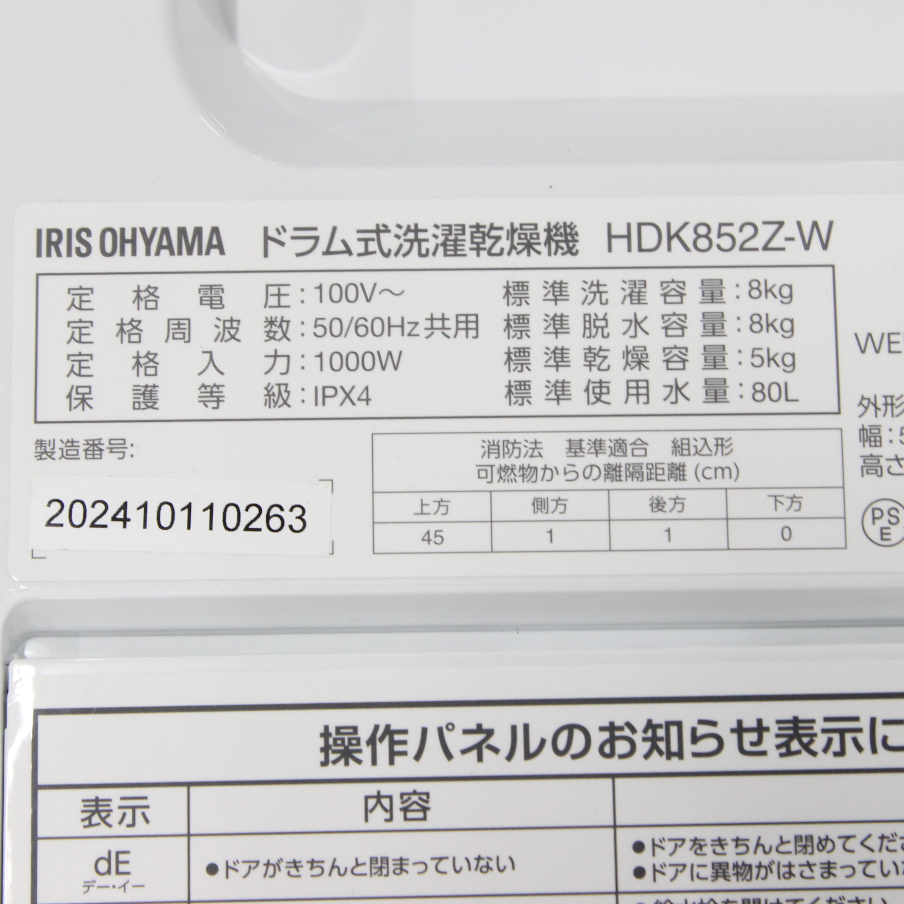 〔展示品〕 ドラム式洗濯乾燥機8.0kg/5.0kg自動投入 ホワイト HDK852Z-W [洗濯8.0kg /乾燥5.0kg /左開き]