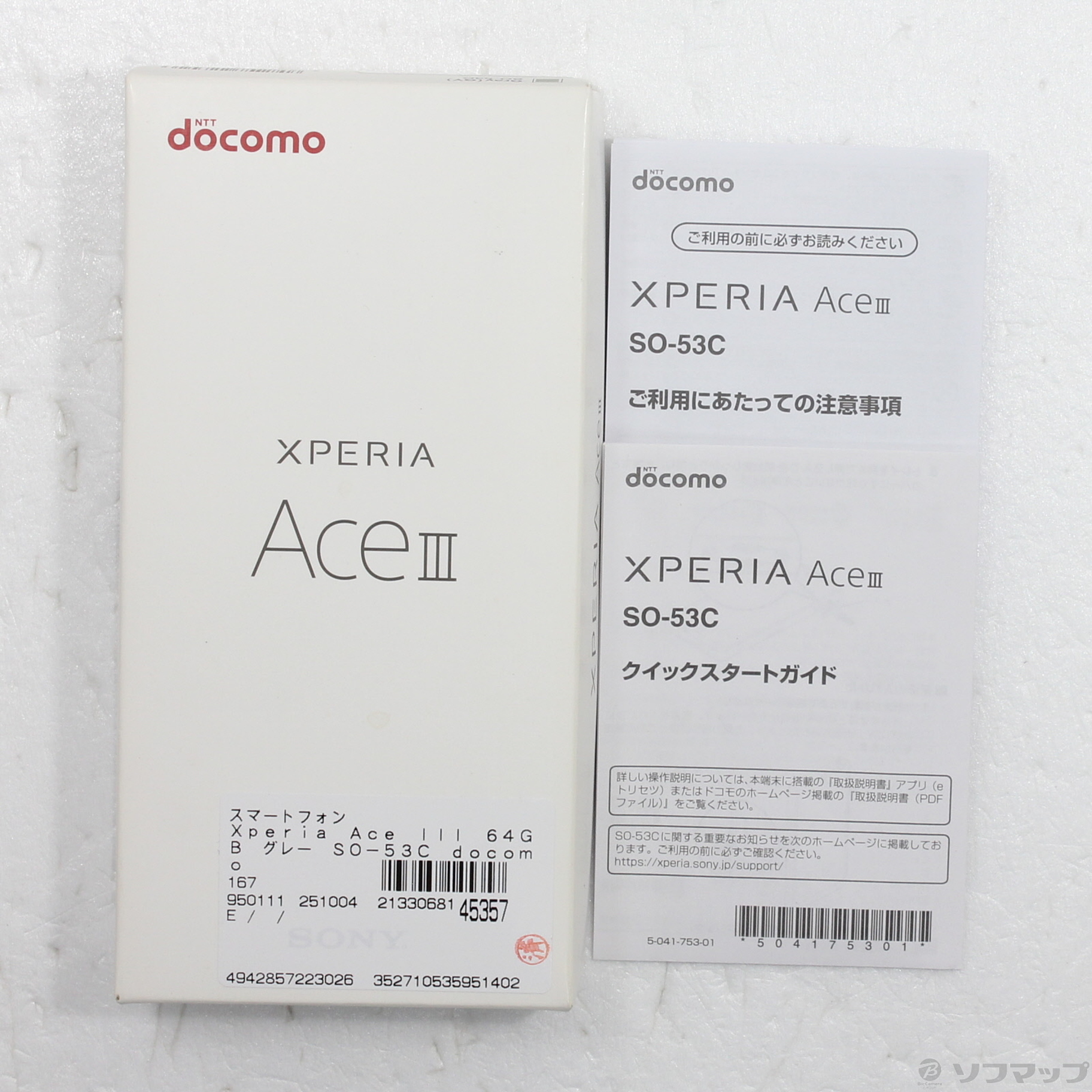 〔中古品〕 Xperia Ace III 64GB グレー SO-53C docomo SIMフリー [5.5インチ液晶/Snapdragon 480 5G]