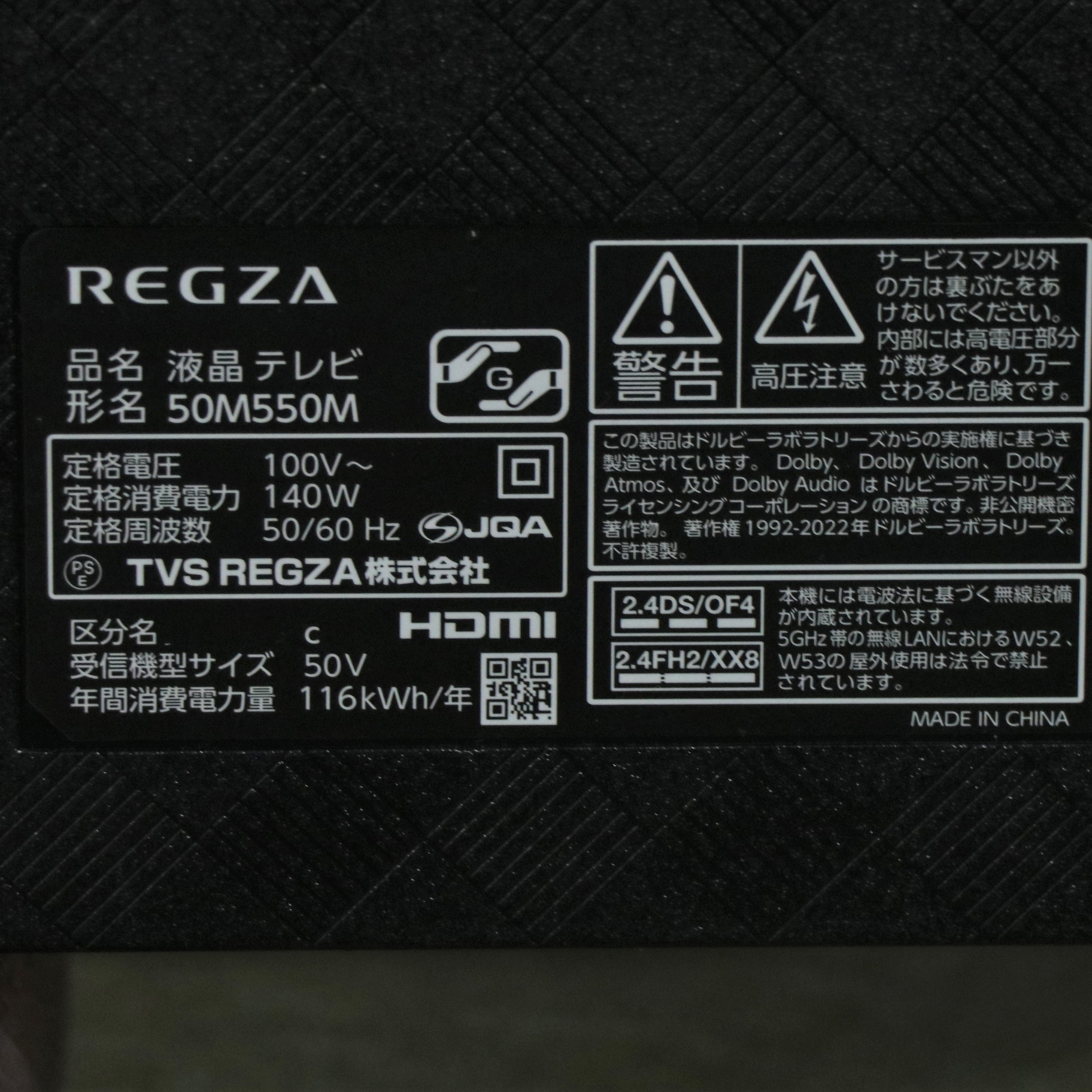 〔展示品〕 液晶テレビ REGZA(レグザ) 50M550M [50V型 /Bluetooth対応 /4K対応 /BS・CS 4Kチューナー内蔵 /YouTube対応]
