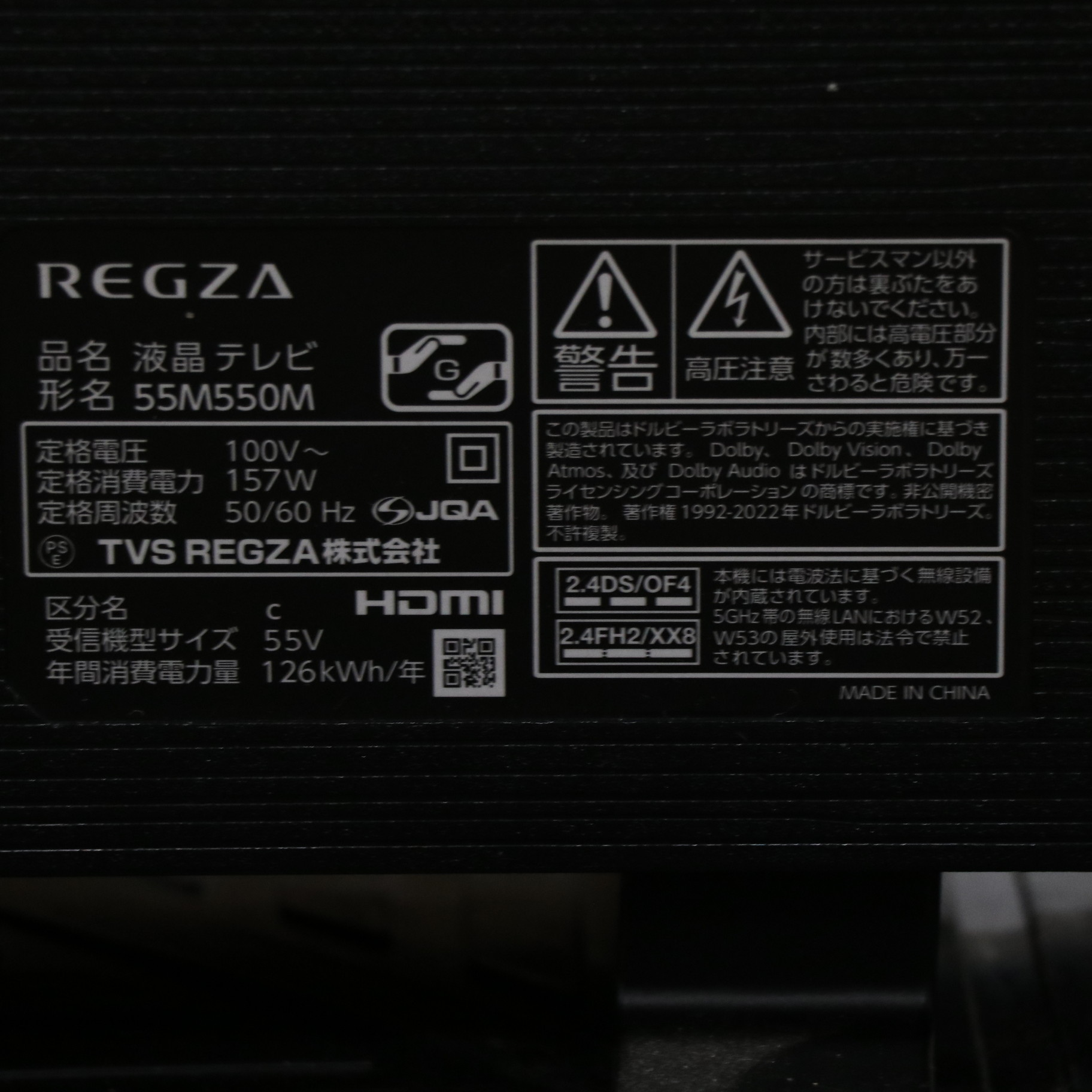 〔展示品〕 液晶テレビ REGZA(レグザ) 55M550M [55V型 /Bluetooth対応 /4K対応 /BS・CS 4Kチューナー内蔵 /YouTube対応]