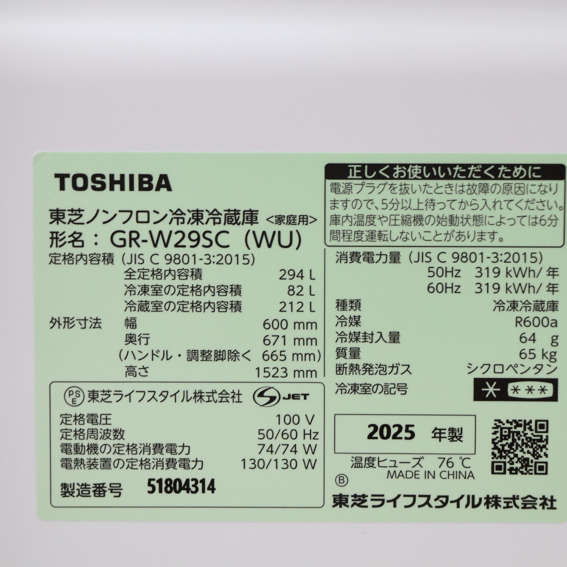〔展示品〕 冷蔵庫 VEGETA(ベジータ)SCシリーズ マットホワイト GR-W29SC-WU [幅60cm /294L /3ドア /右開きタイプ /2025年]