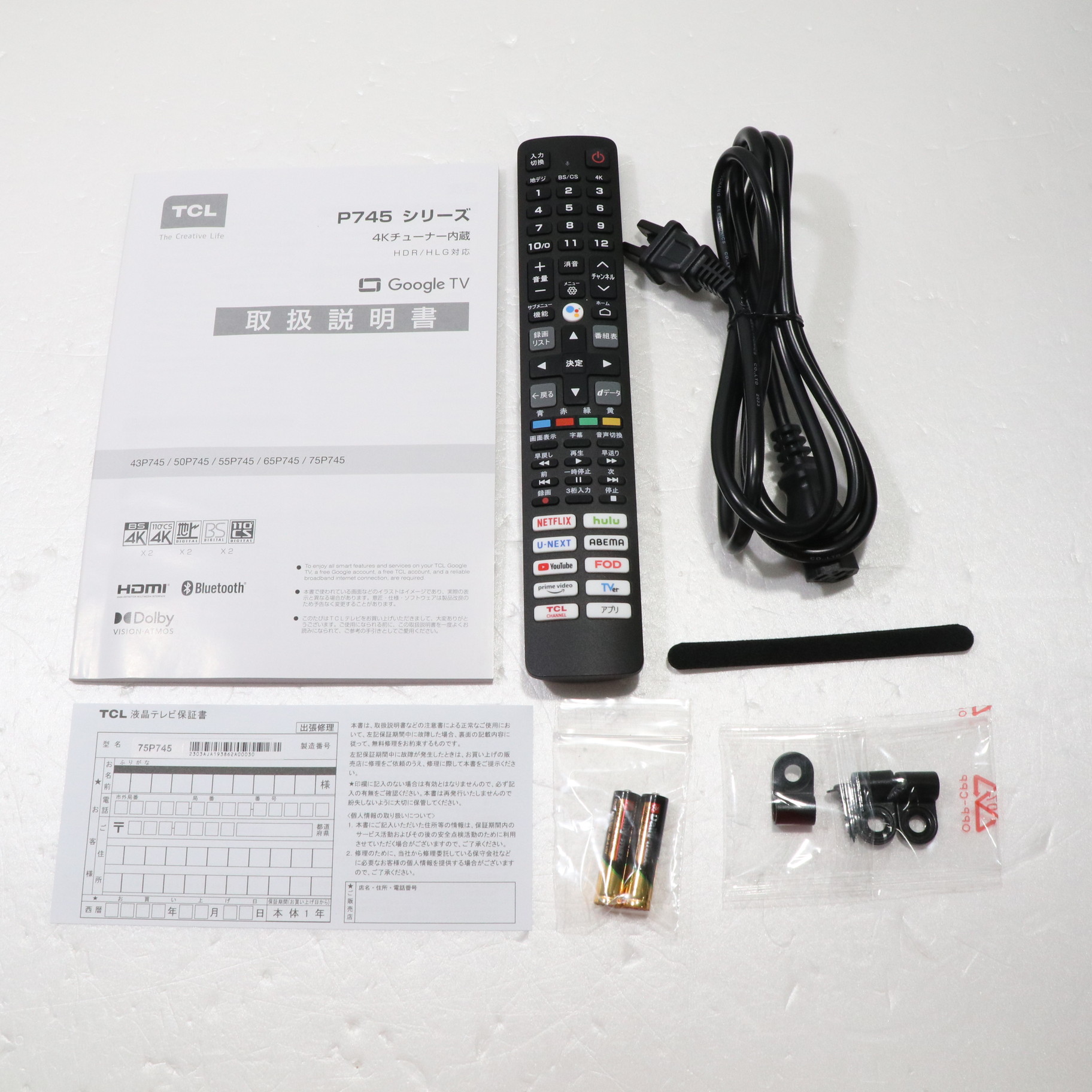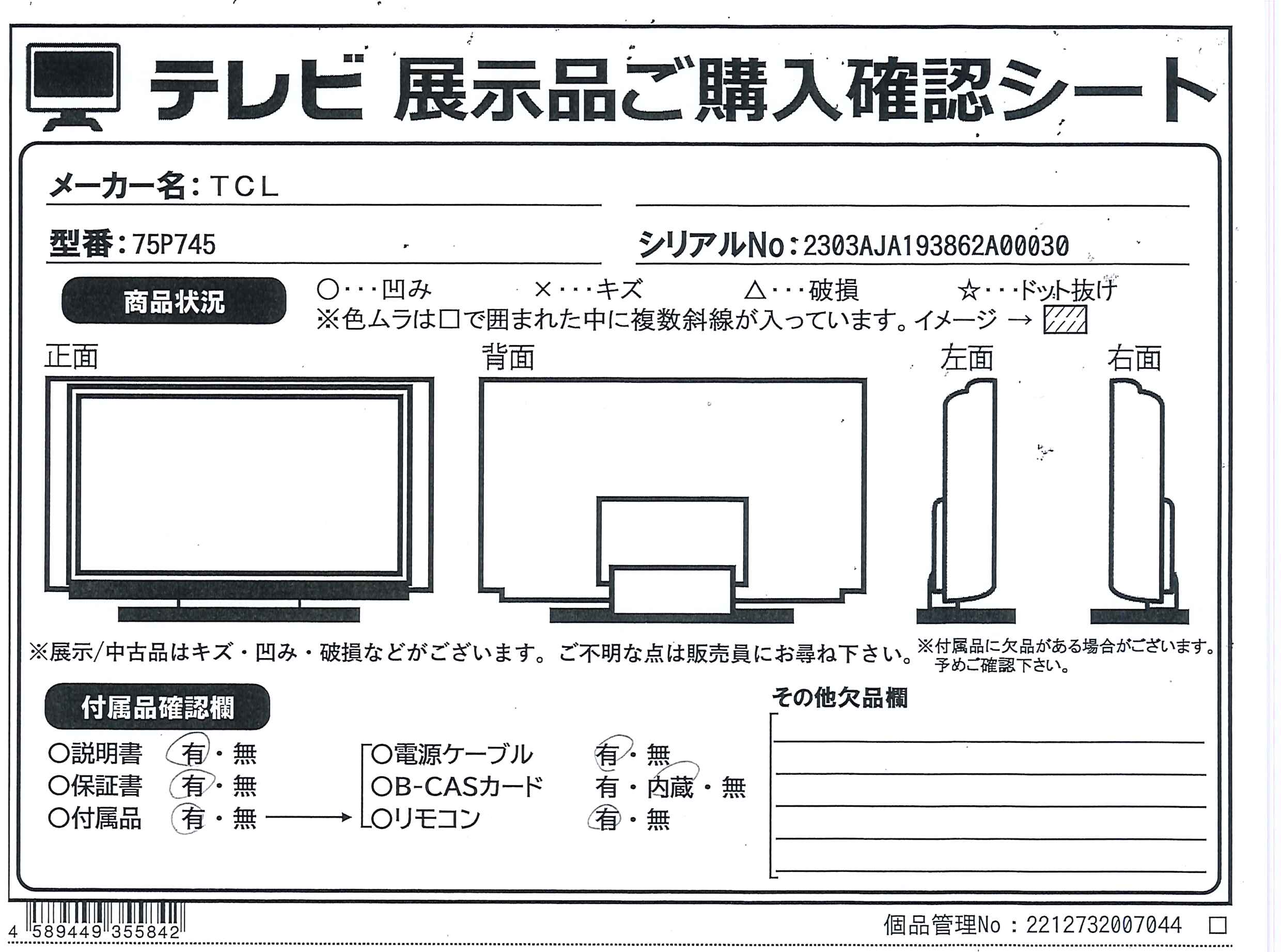 中古商品ランクについて 付属品・商品状態について 〔付属品〕取扱説明書、かんたんガイド、リモコン、電源コード、スタンド×2、スタンド組立用ネジ×4、マジックテープ×2、転倒防止部品一式、リモコン用単4形乾電池×2