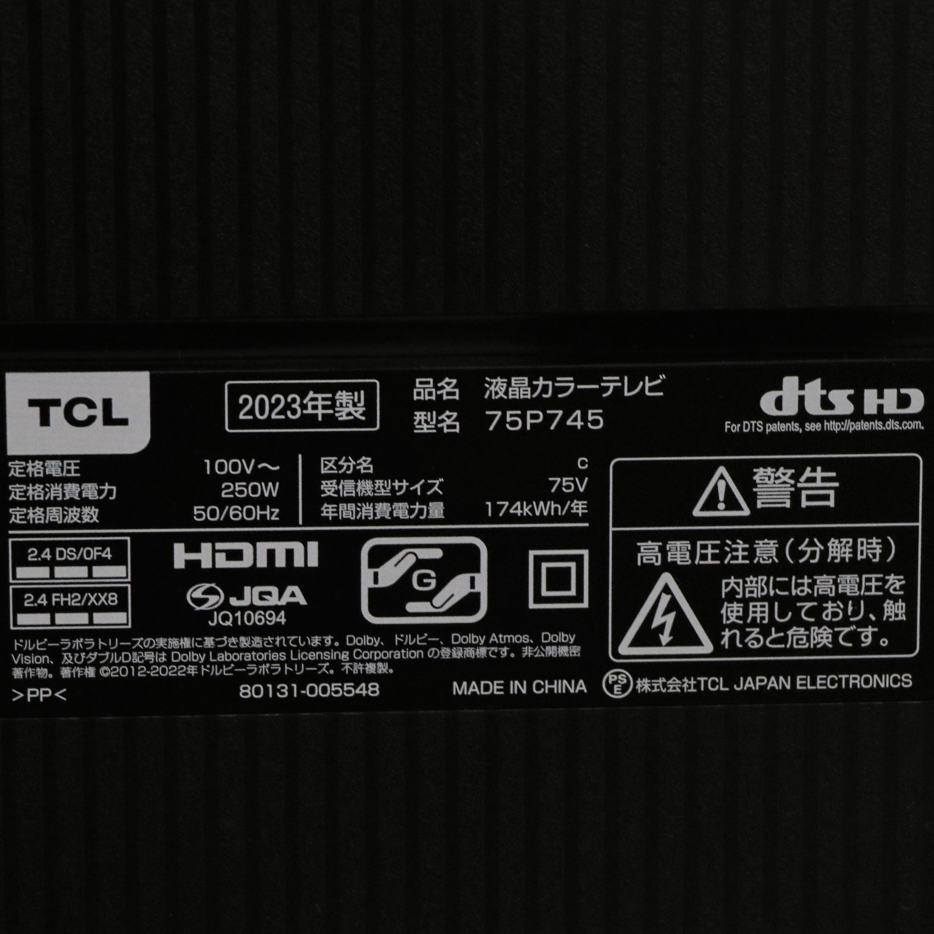 〔展示品〕 液晶テレビ P745シリーズ 75P745 [75V型 /4K対応 /BS・CS 4Kチューナー内蔵 /YouTube対応]