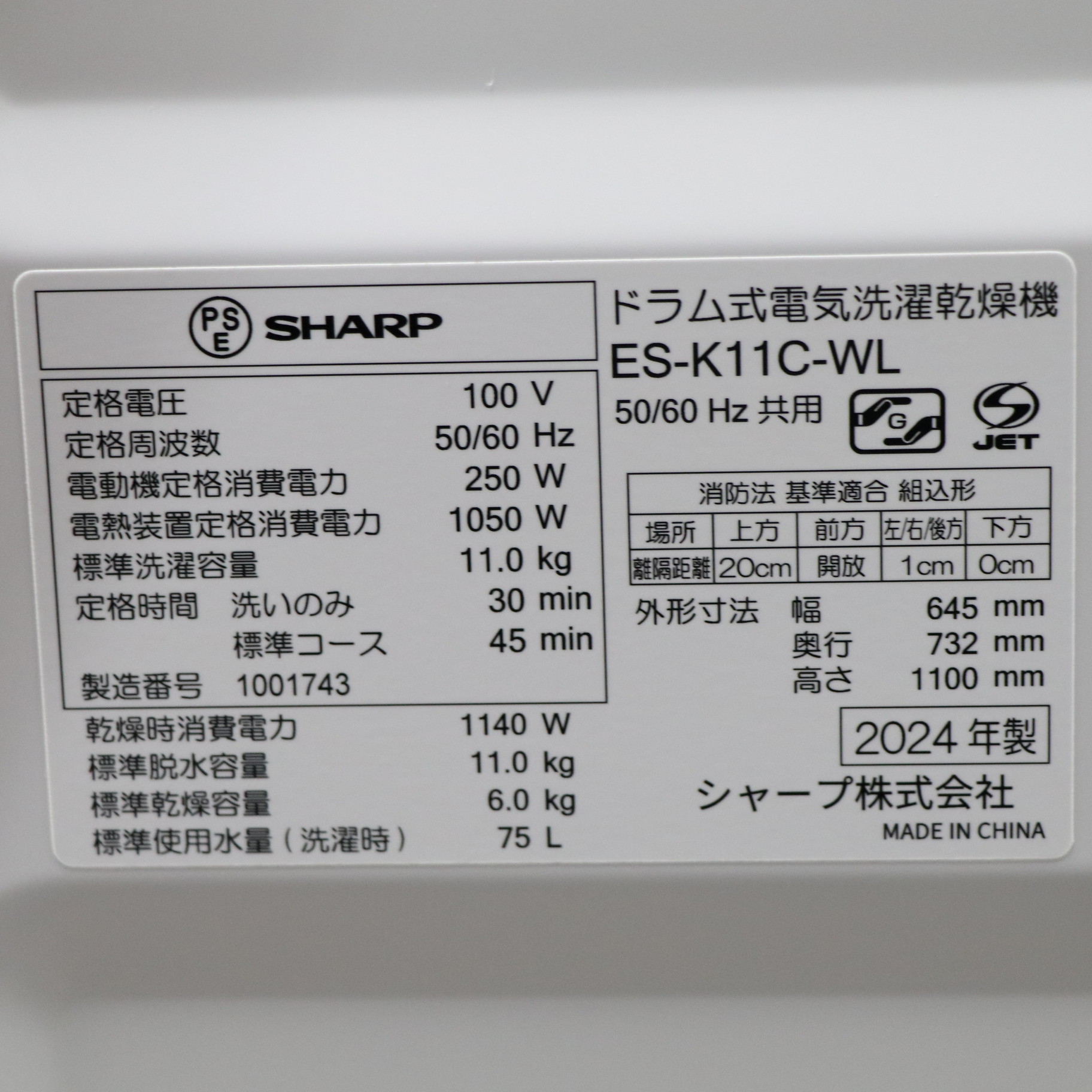 〔展示品〕 ドラム式洗濯機 クリスタルホワイト ES-K11C-WL [洗濯11.0kg /乾燥6.0kg /ヒーター乾燥(水冷・除湿タイプ) /左開き]