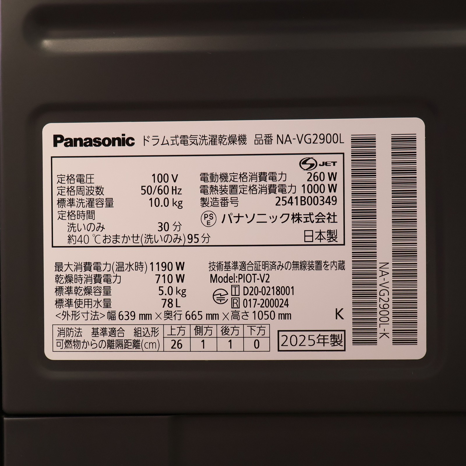 〔中古品〕 ドラム式洗濯乾燥機 Cuble(キューブル) スモーキーブラック NA-VG2900L-K [洗濯10.0kg /乾燥5.0kg /ヒーター乾燥(排気タイプ) /左開き]