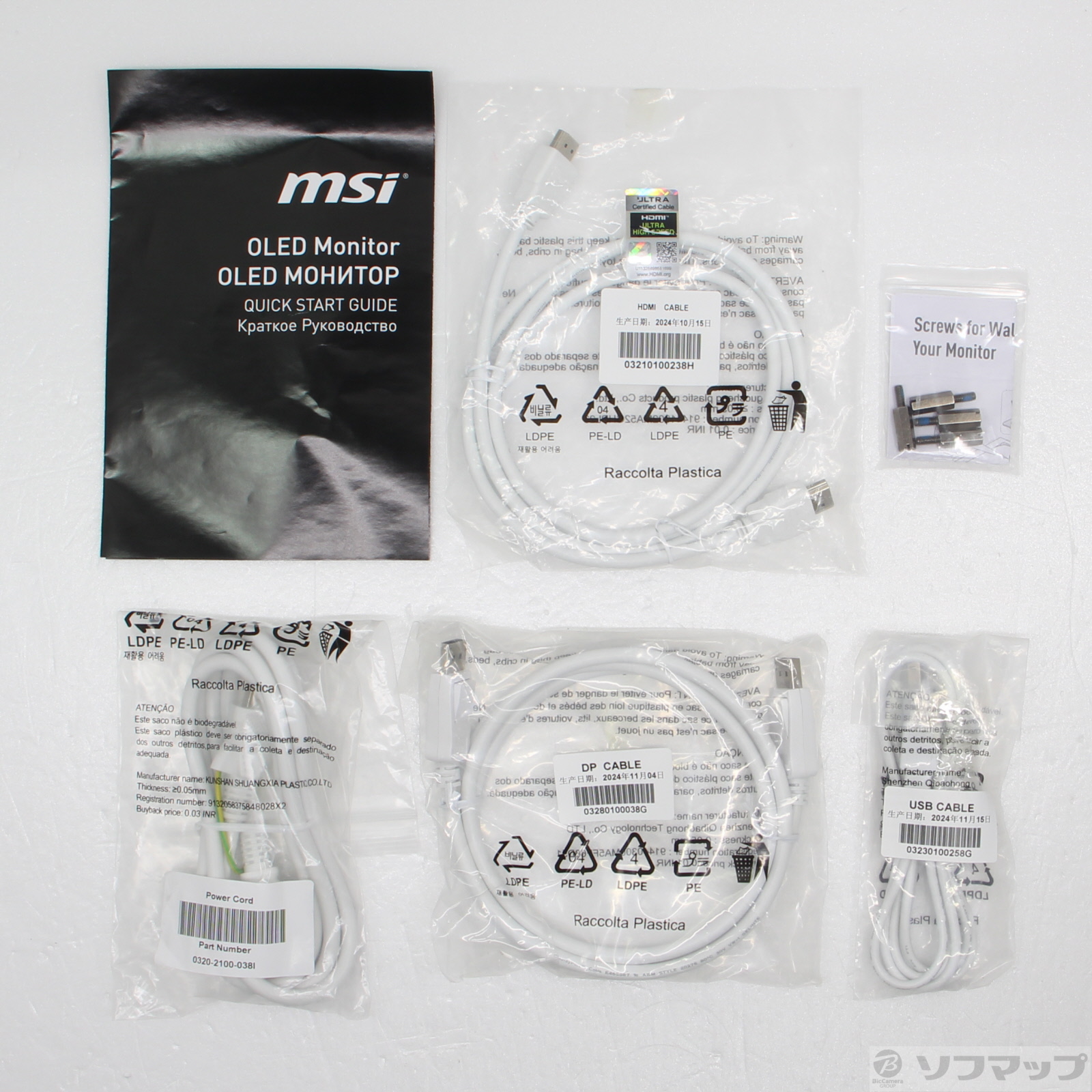 中古商品ランクについて 付属品・商品状態について 〔付属品〕クイックスタートガイド、VESAマウント用スペーサーネジ ×4、電源ケーブル、DisplayPortケーブル、HDMIケーブル、USB Type-A to Type-Bケーブル
