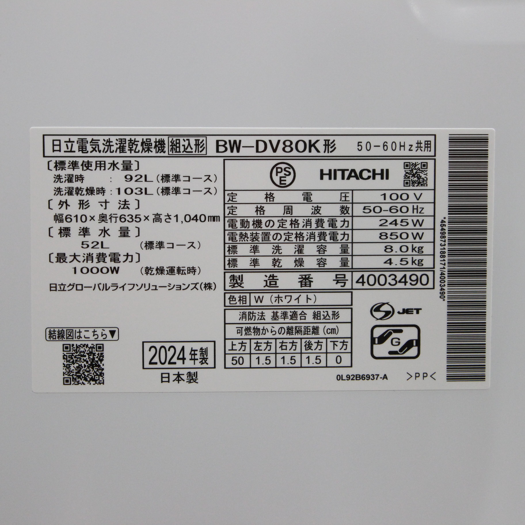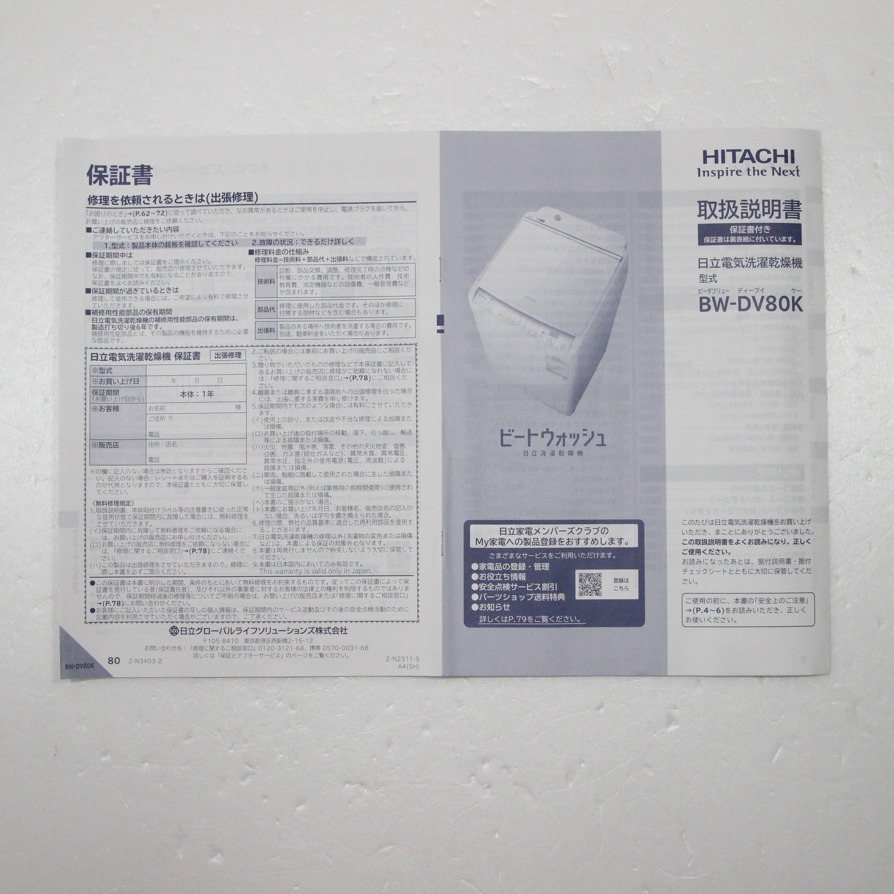 〔展示品〕 タテ型洗濯乾燥機 ビートウォッシュ ホワイト BW-DV80K-W [洗濯8.0kg /乾燥4.5kg /ヒーター乾燥(水冷・除湿タイプ) /上開き]