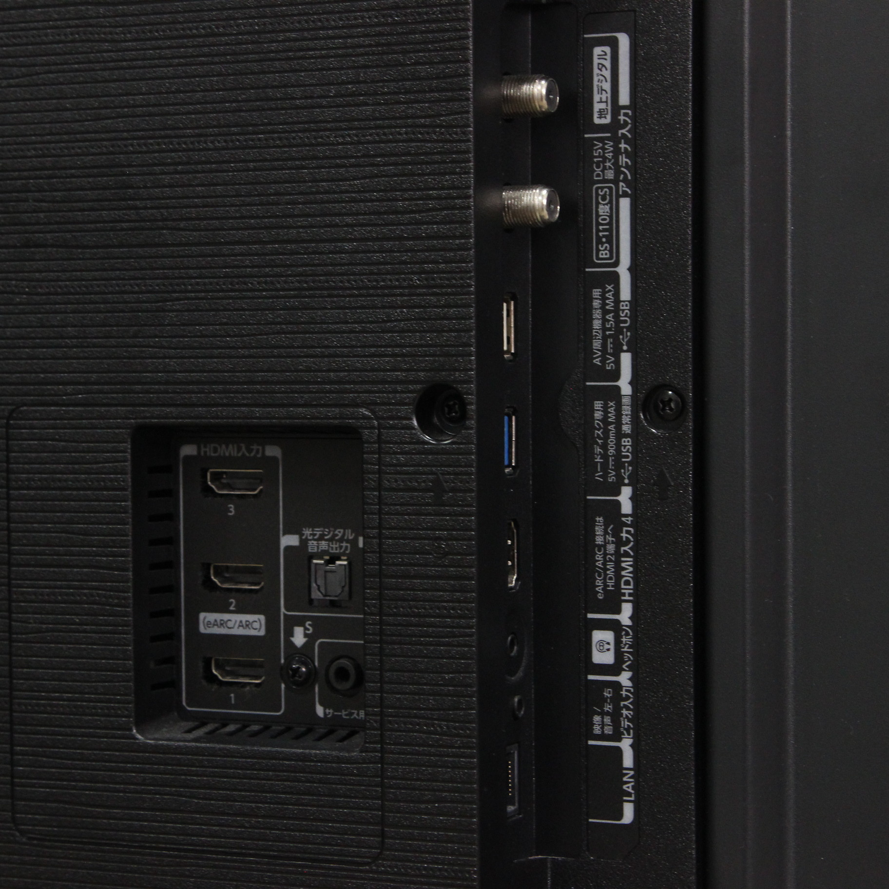 出力端子 光デジタル音声出力×1/LAN×1/USB×2(録画専用×1/汎用(電源供給付)×1)/ヘッドホン×1