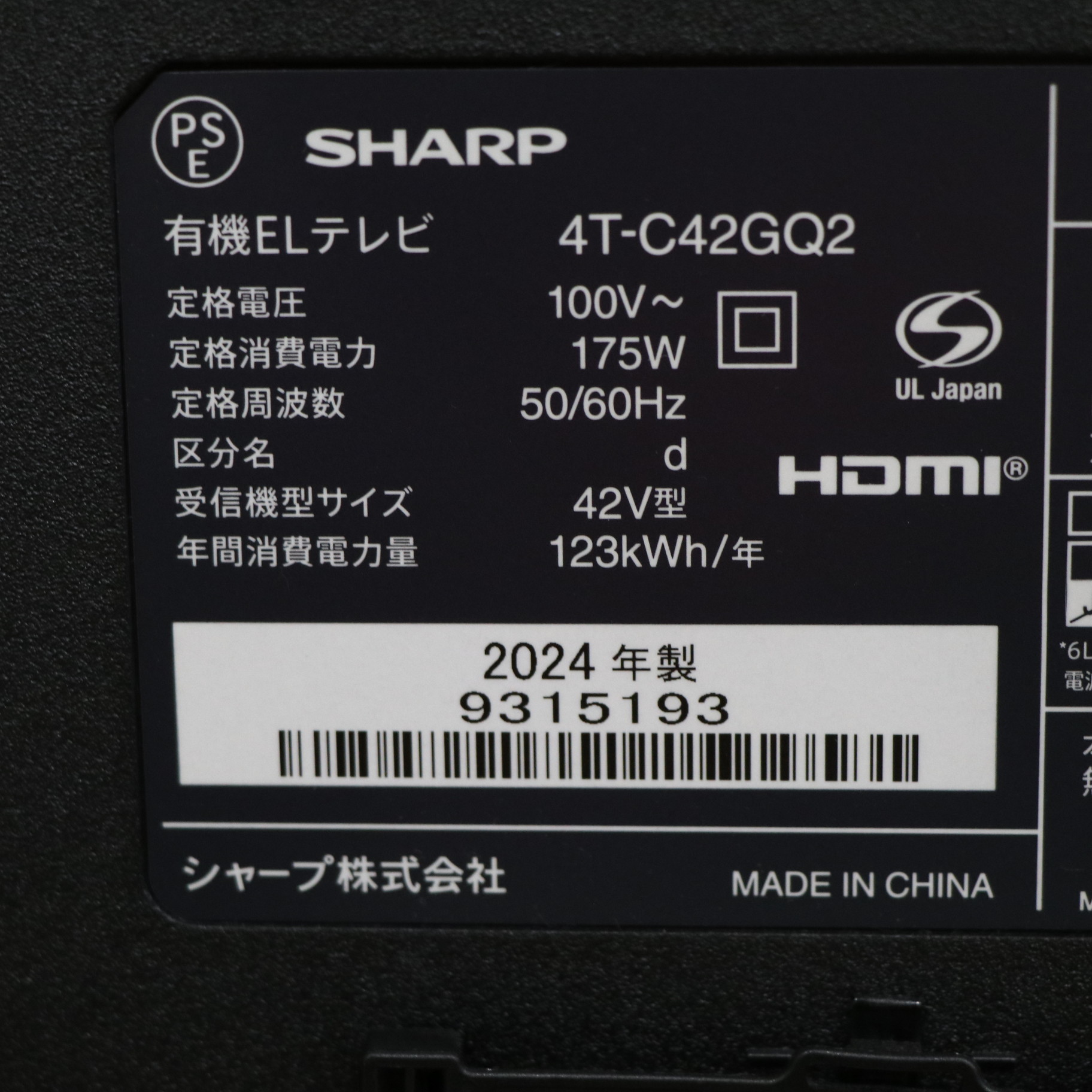 〔展示品〕 有機ELテレビ AQUOS ブラック 4T-C42GQ2 [42V型 /Bluetooth対応 /4K対応 /BS・CS 4Kチューナー内蔵 /YouTube対応]