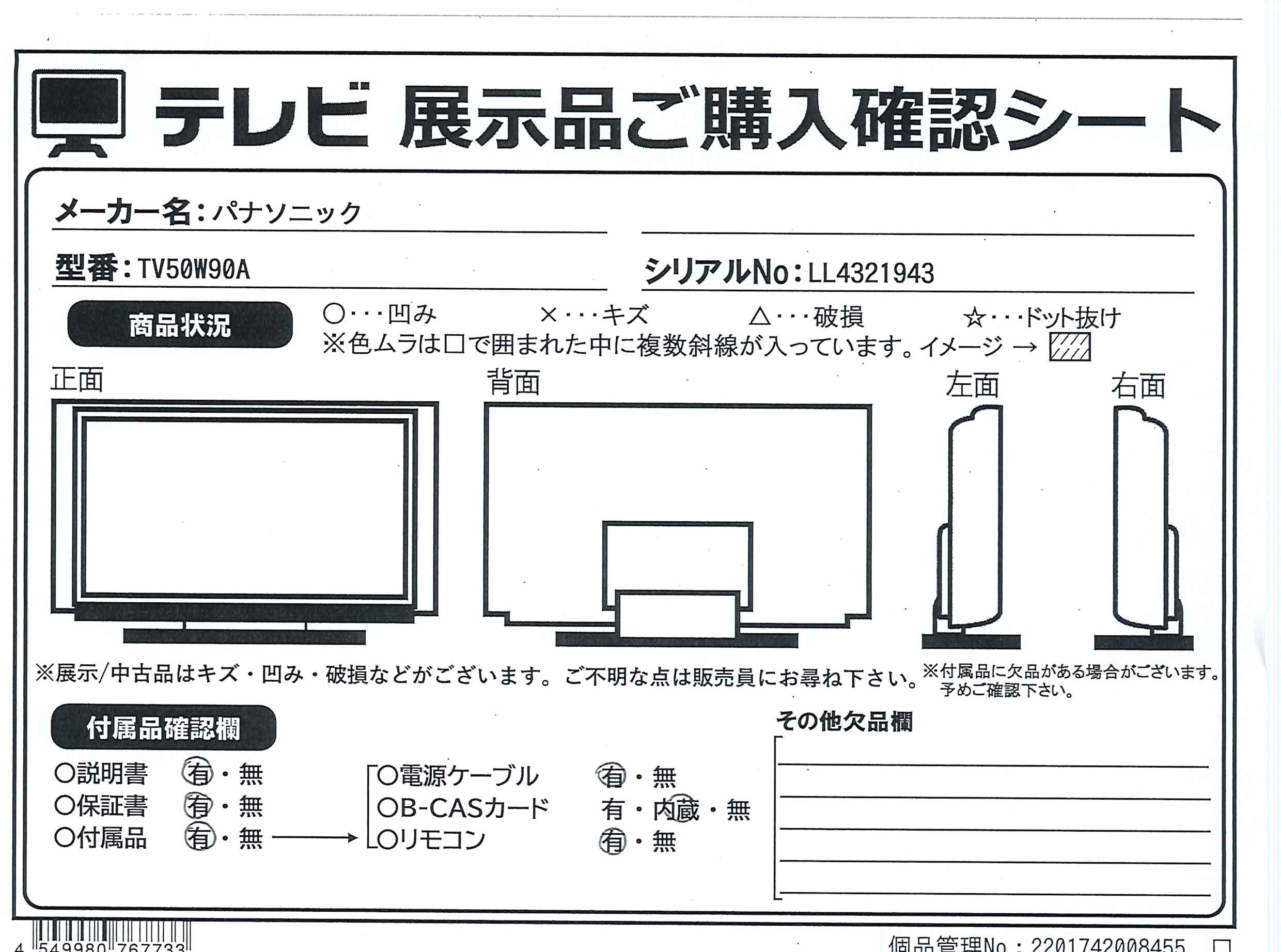 付属品・商品状態について