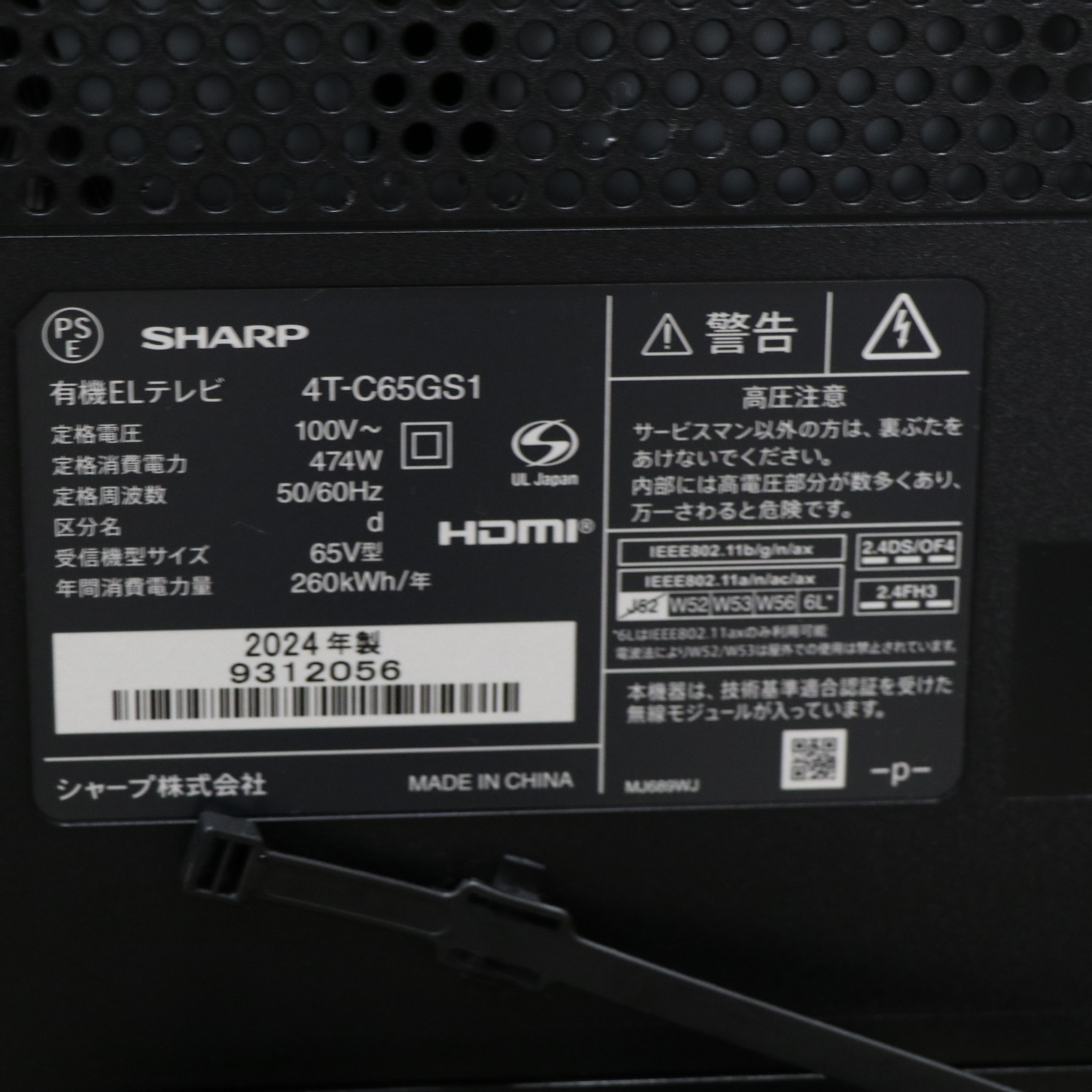 商品名 〔展示品〕 有機ELテレビ AQUOS ブラック 4T-C65GS1 [65V型 /Bluetooth対応 /4K対応 /BS・CS 4Kチューナー内蔵 /YouTube対応]
