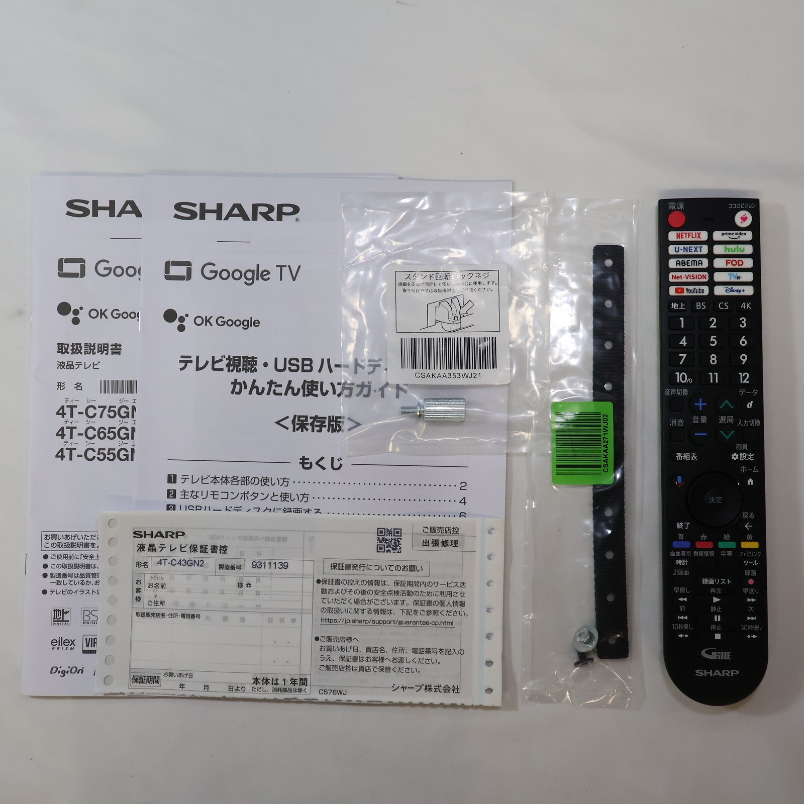 〔展示品〕 液晶テレビ AQUOS(アクオス) ブラック 4T-C43GN2 [43V型 /Bluetooth対応 /4K対応 /BS・CS 4Kチューナー内蔵 /YouTube対応]