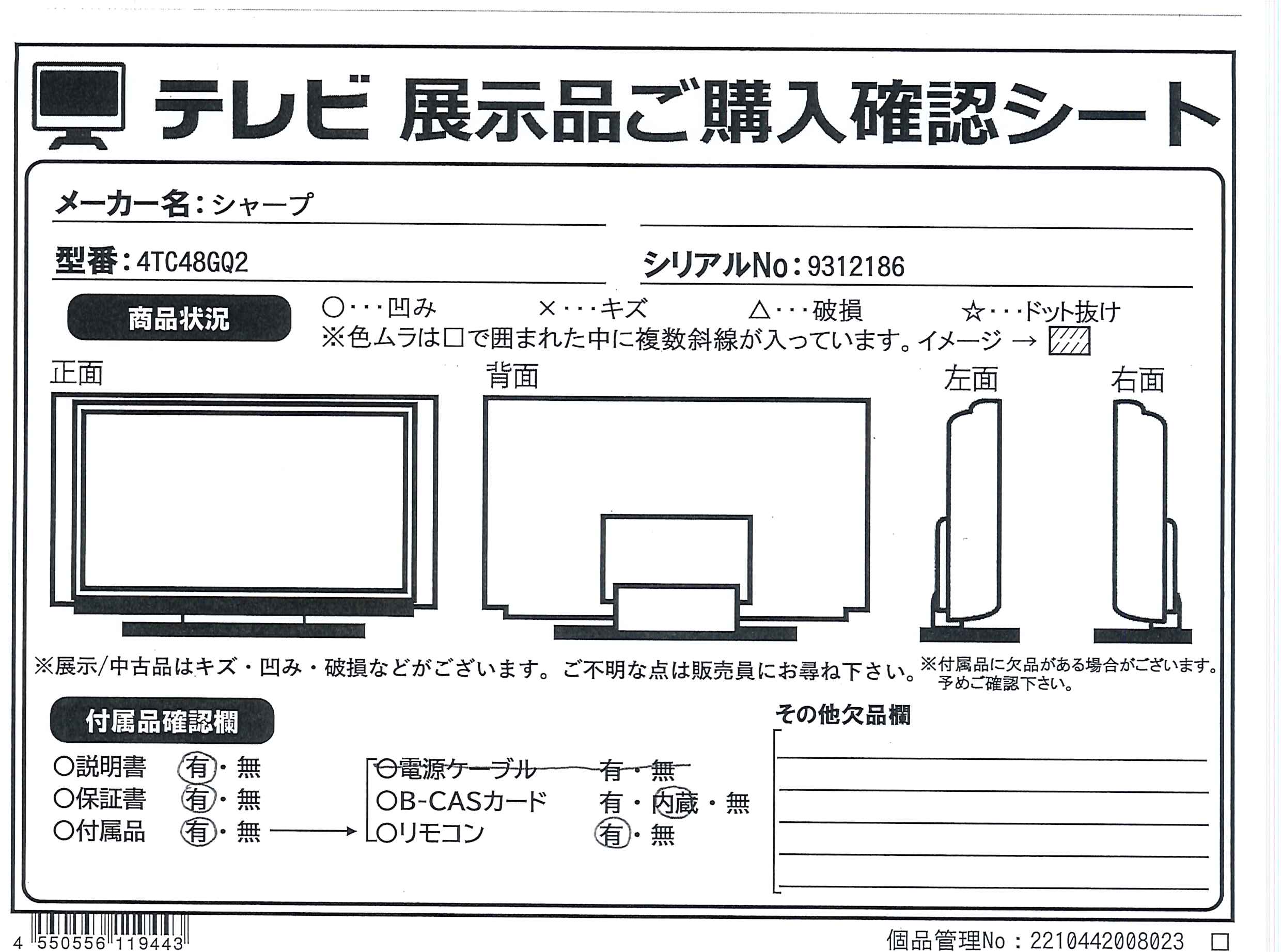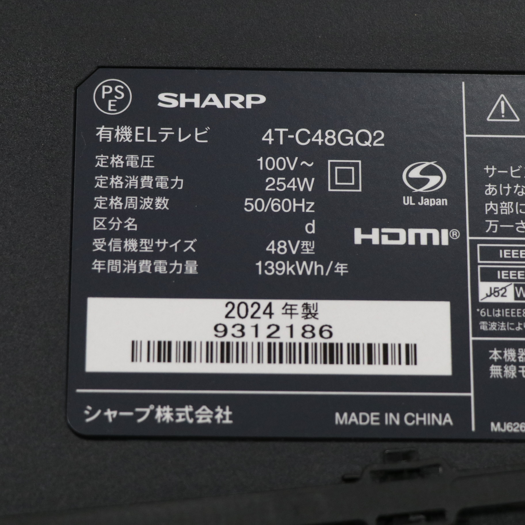 ![SHARP(シャープ) 有機ELテレビ AQUOS ブラック 4T-C48GQ2 [48V型 /Bluetooth対応 /4K対応 /BS・CS 4Kチューナー内蔵 /YouTube対応]](https://image.sofmap.com/images/product/large/4550556119443.jpg)