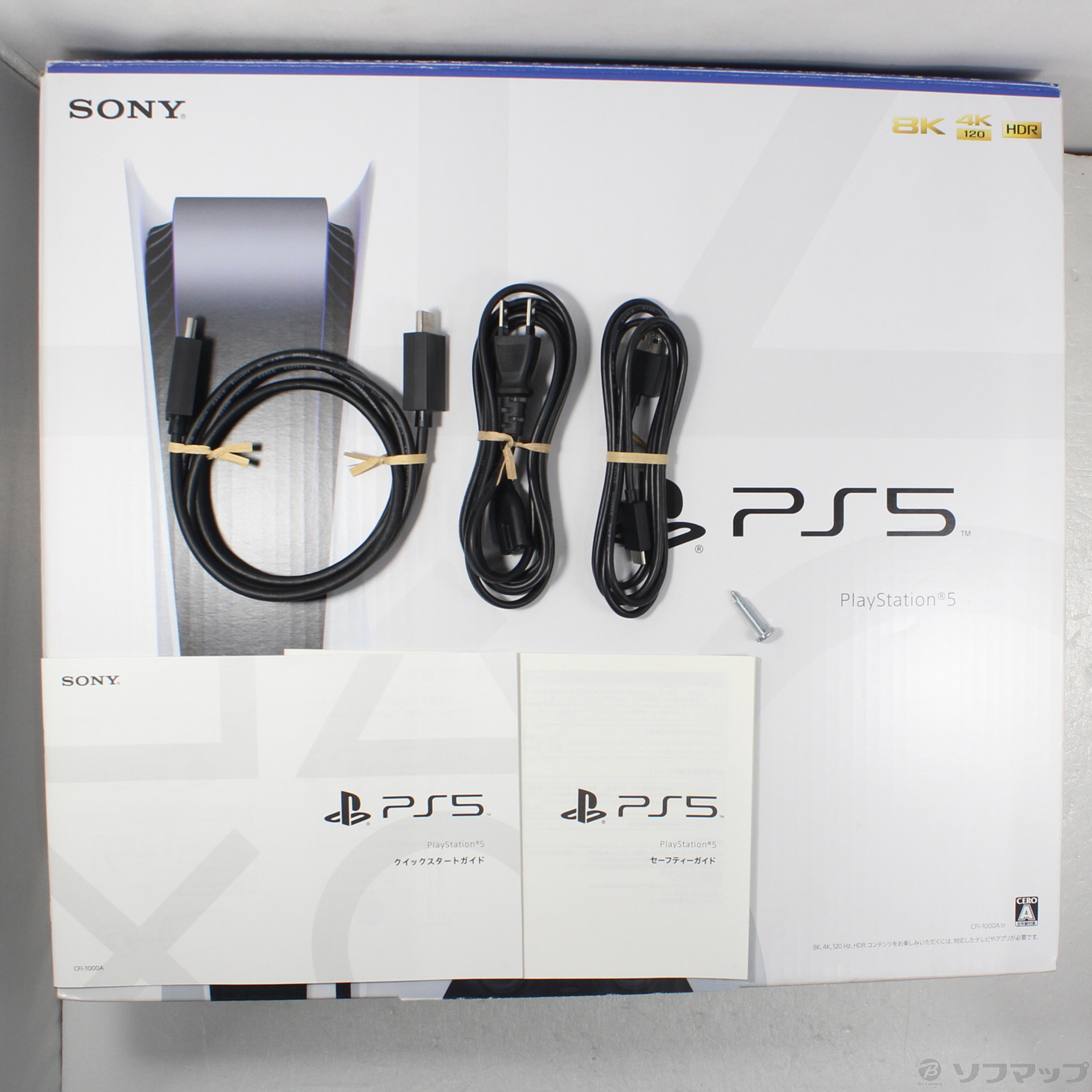 中古商品ランクについて 付属品・商品状態について 〔付属品〕外箱/内箱、クイックスタートガイド、セーフティガイド、DualSense ワイヤレスコントローラー、本体底面ネジ穴キャップ、ベース、ベース取付用ネジ、HDMIケーブル、USBケーブル、ACケーブル