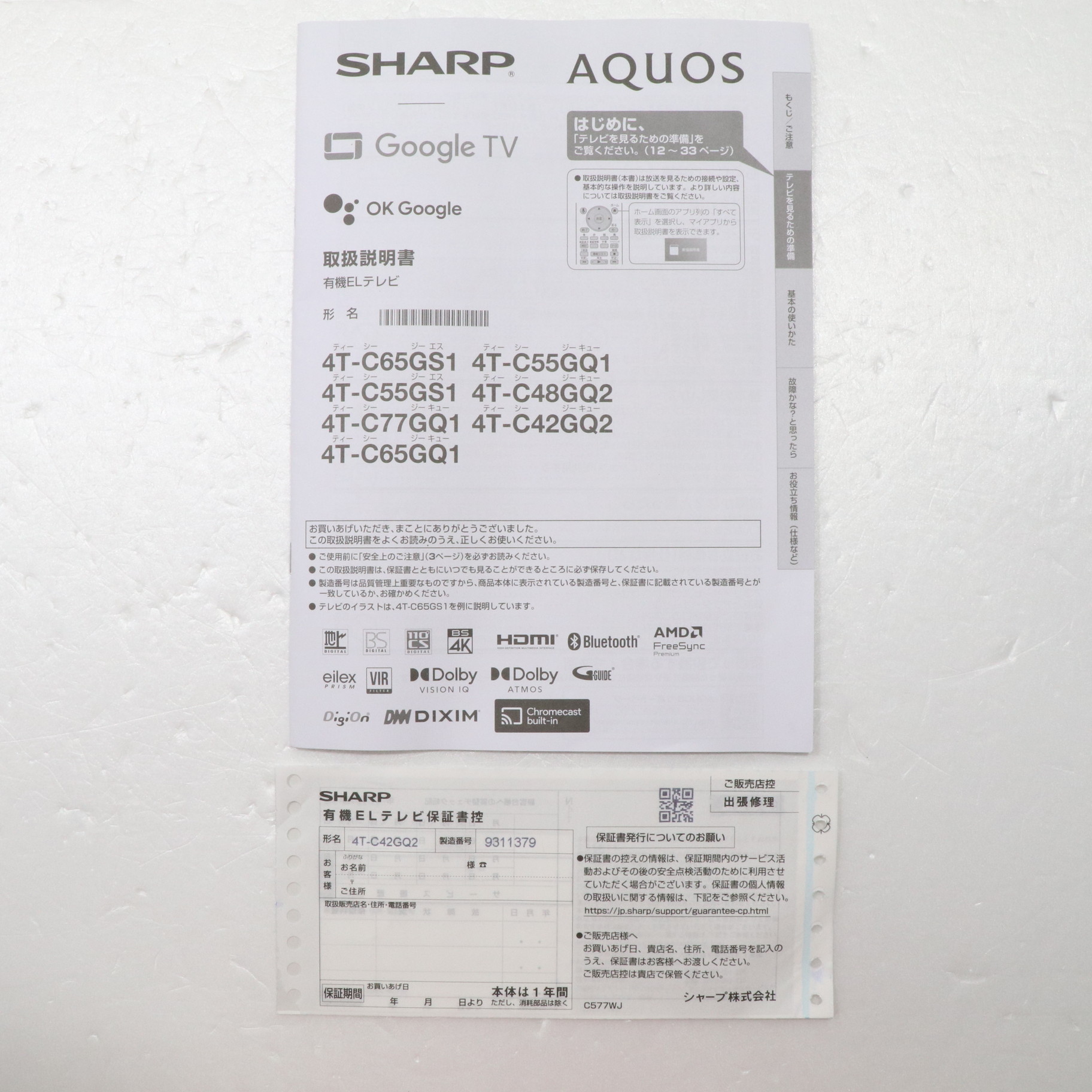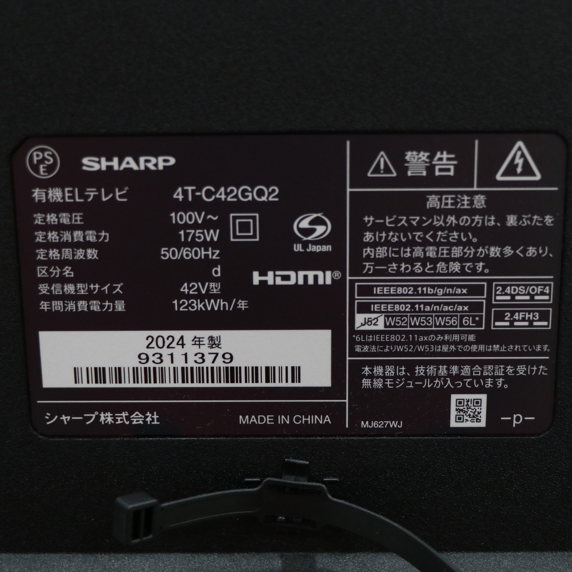 〔展示品〕 有機ELテレビ AQUOS ブラック 4T-C42GQ2 [42V型 /Bluetooth対応 /4K対応 /BS・CS 4Kチューナー内蔵 /YouTube対応]