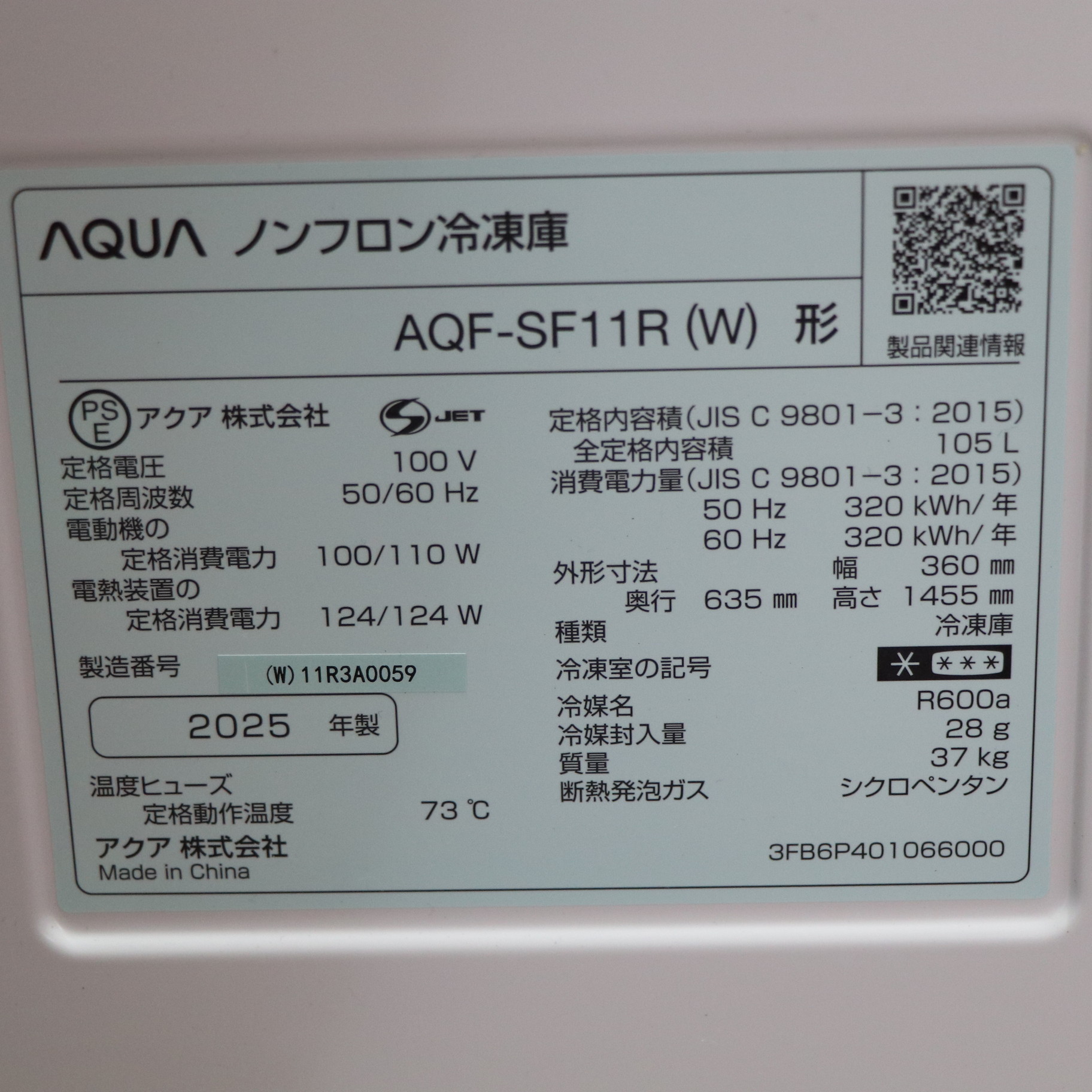 商品名 〔展示品〕 ファン式冷凍庫 ホワイト AQF-SF11R-W [幅36cm /105L /1ドア /右開きタイプ /2025年]