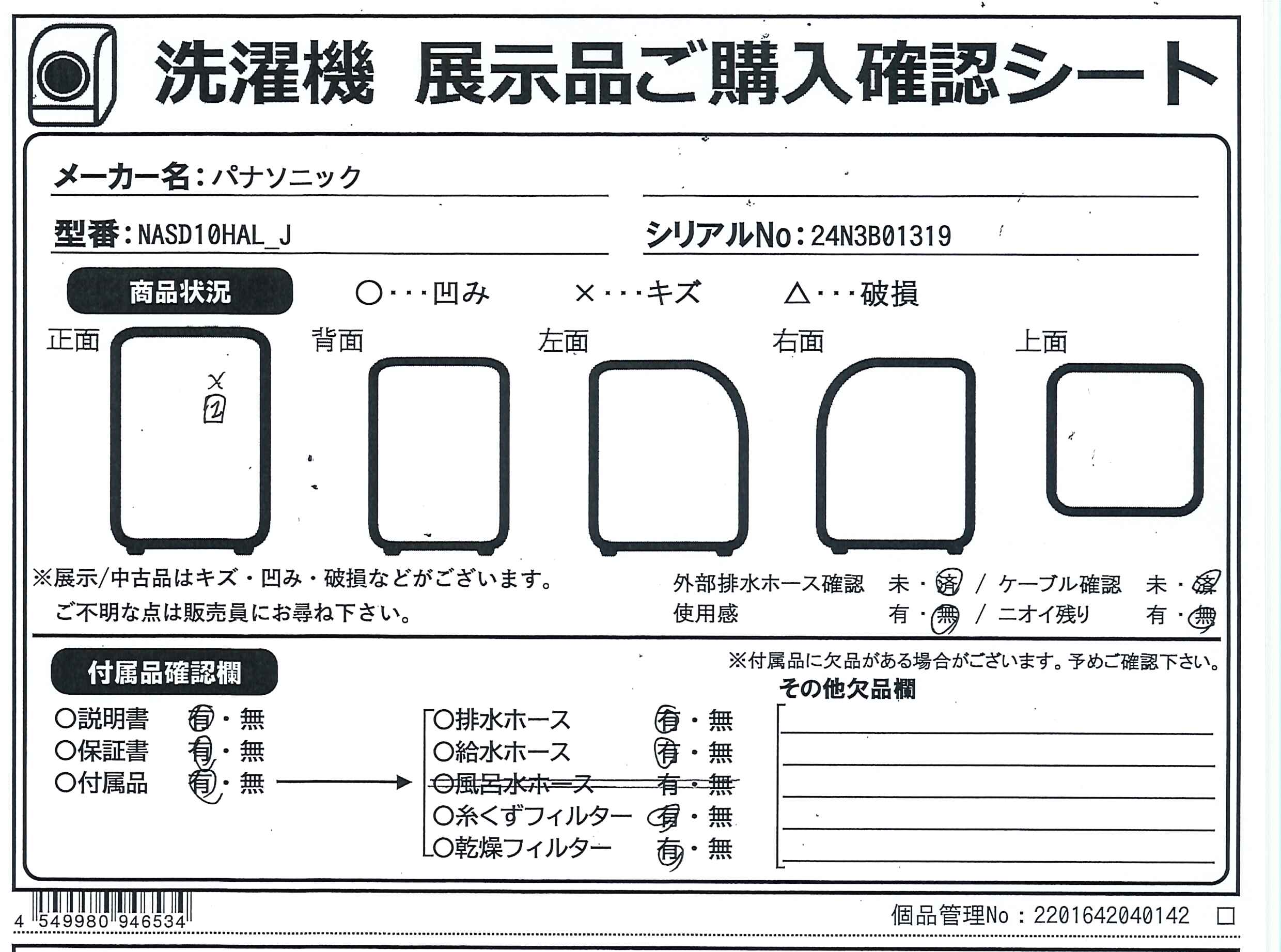 中古商品ランクについて 付属品・商品状態について 〔付属品〕取扱説明書、かんたんガイド、給水ホース(長さ0.8m)、外部排水ホース(ホースバンド付き)、カバー×2、カバー用ネジ×2、ホース穴カバー