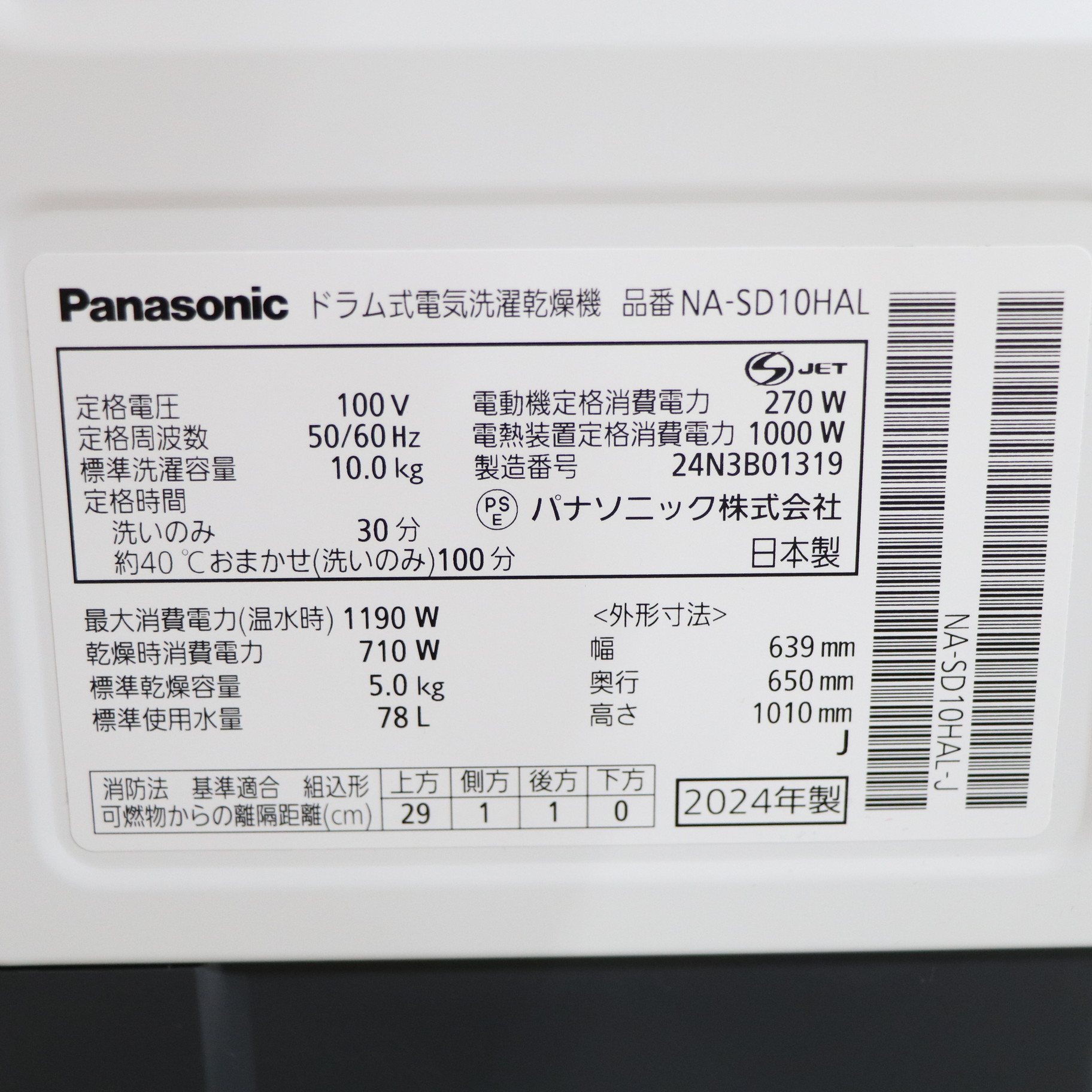 〔展示品〕 ドラム式洗濯乾燥機 SDシリーズ マットホワイト NA-SD10HAL-J [洗濯10.0kg /乾燥5.0kg /ヒーター乾燥(排気タイプ) /左開き]