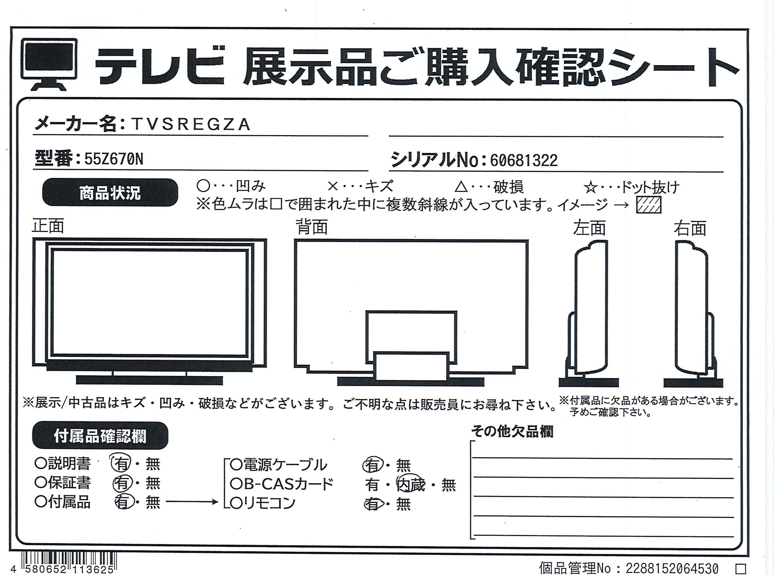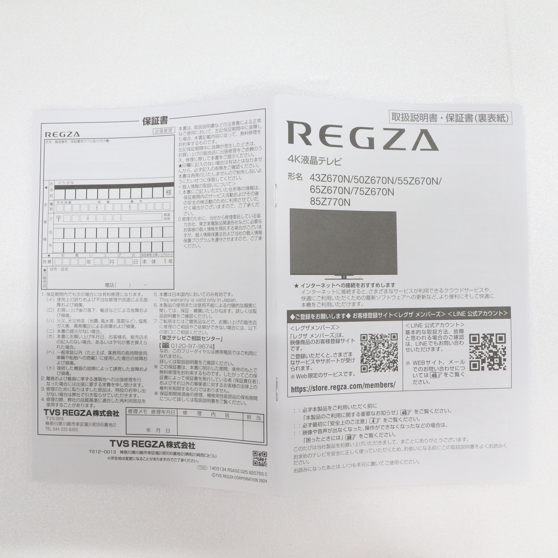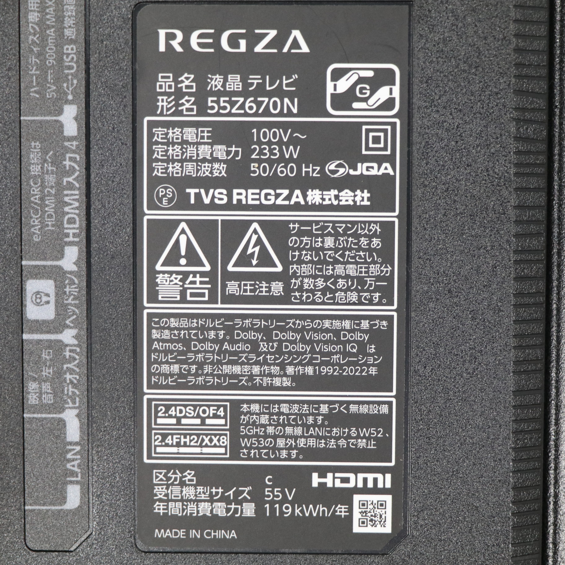 〔展示品〕 液晶テレビ REGZA(レグザ) 55Z670N [55V型 /Bluetooth対応 /4K対応 /BS・CS 4Kチューナー内蔵 /YouTube対応]