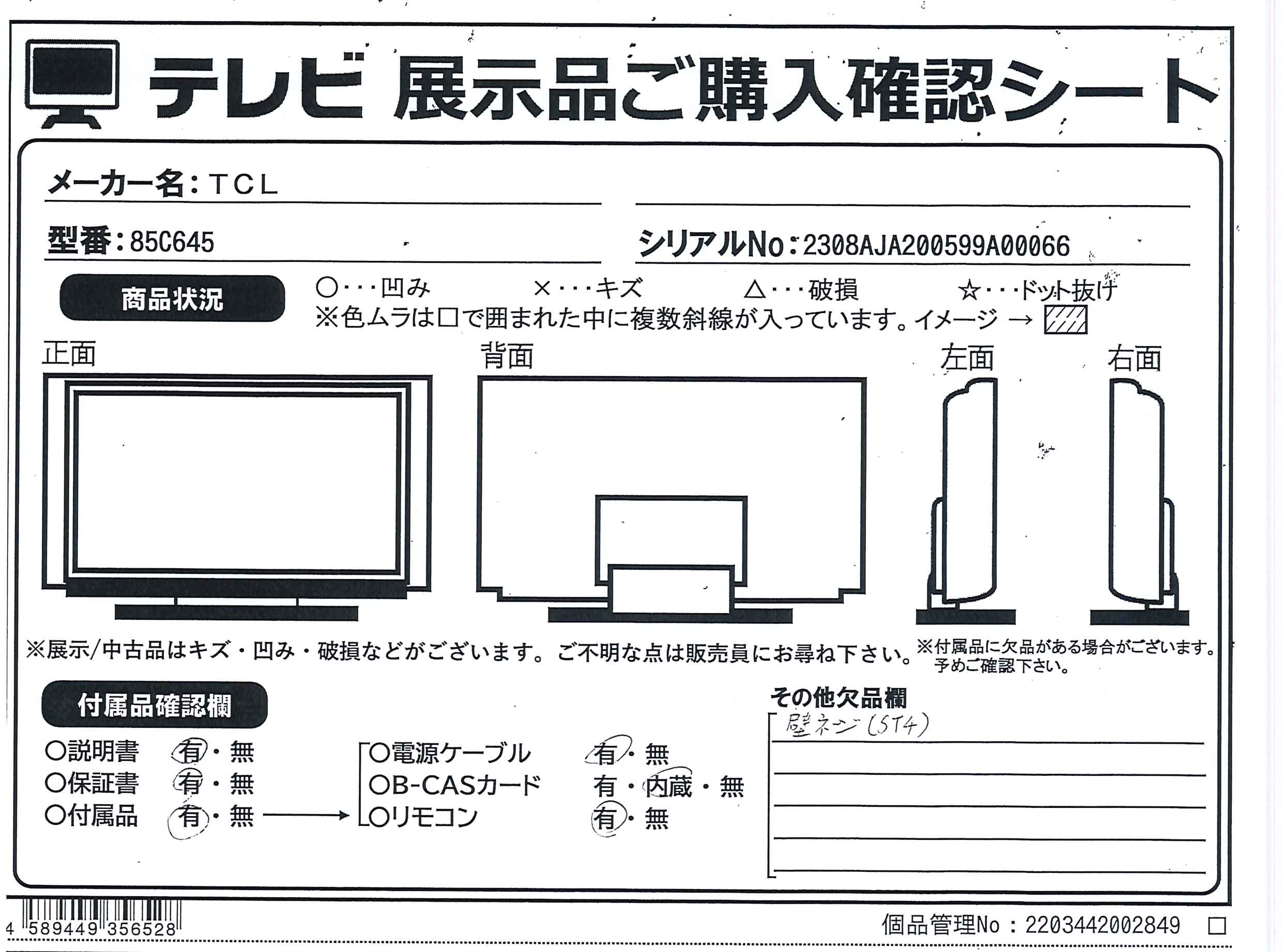 中古商品ランクについて 付属品・商品状態について 〔付属品〕取扱説明書、かんたんガイド、リモコン、単4形乾電池×2、電源コード、スタンド×2、ネジ(M5)×6、ケーブルクランプ×2、VESAネジ×2、クリップ×3