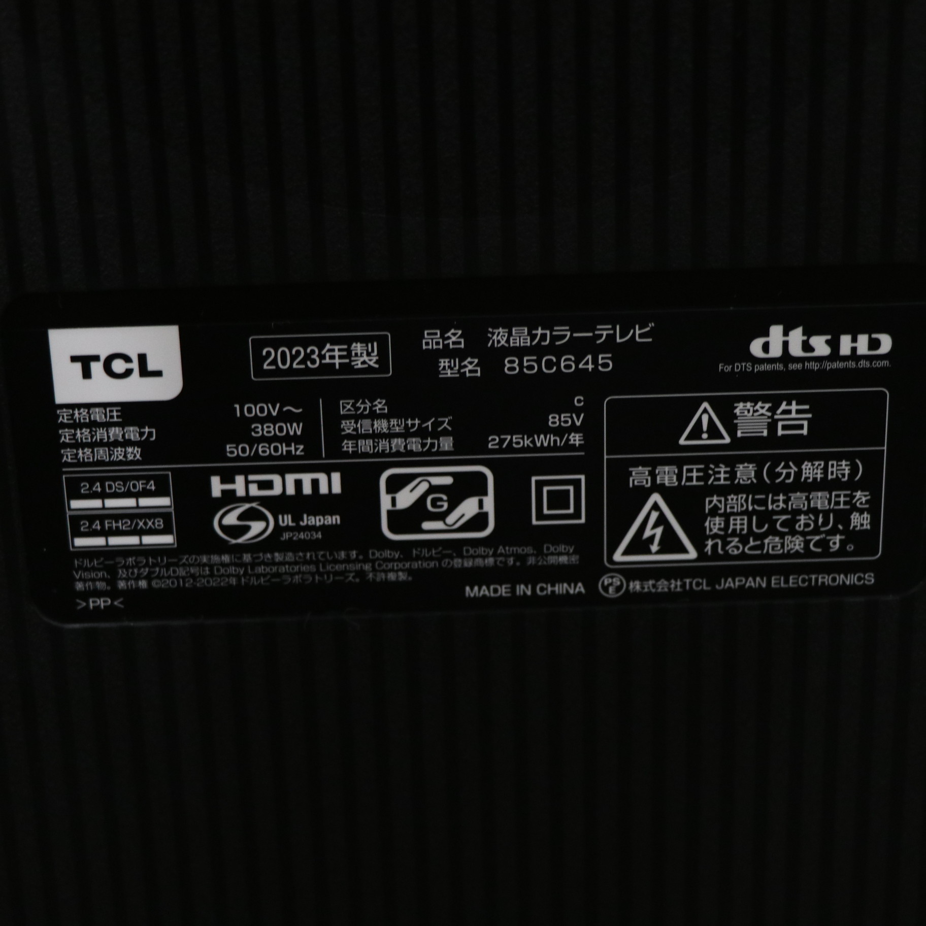〔展示品〕 液晶テレビ C645シリーズ 85C645 [85V型 /Bluetooth対応 /4K対応 /BS・CS 4Kチューナー内蔵 /YouTube対応]