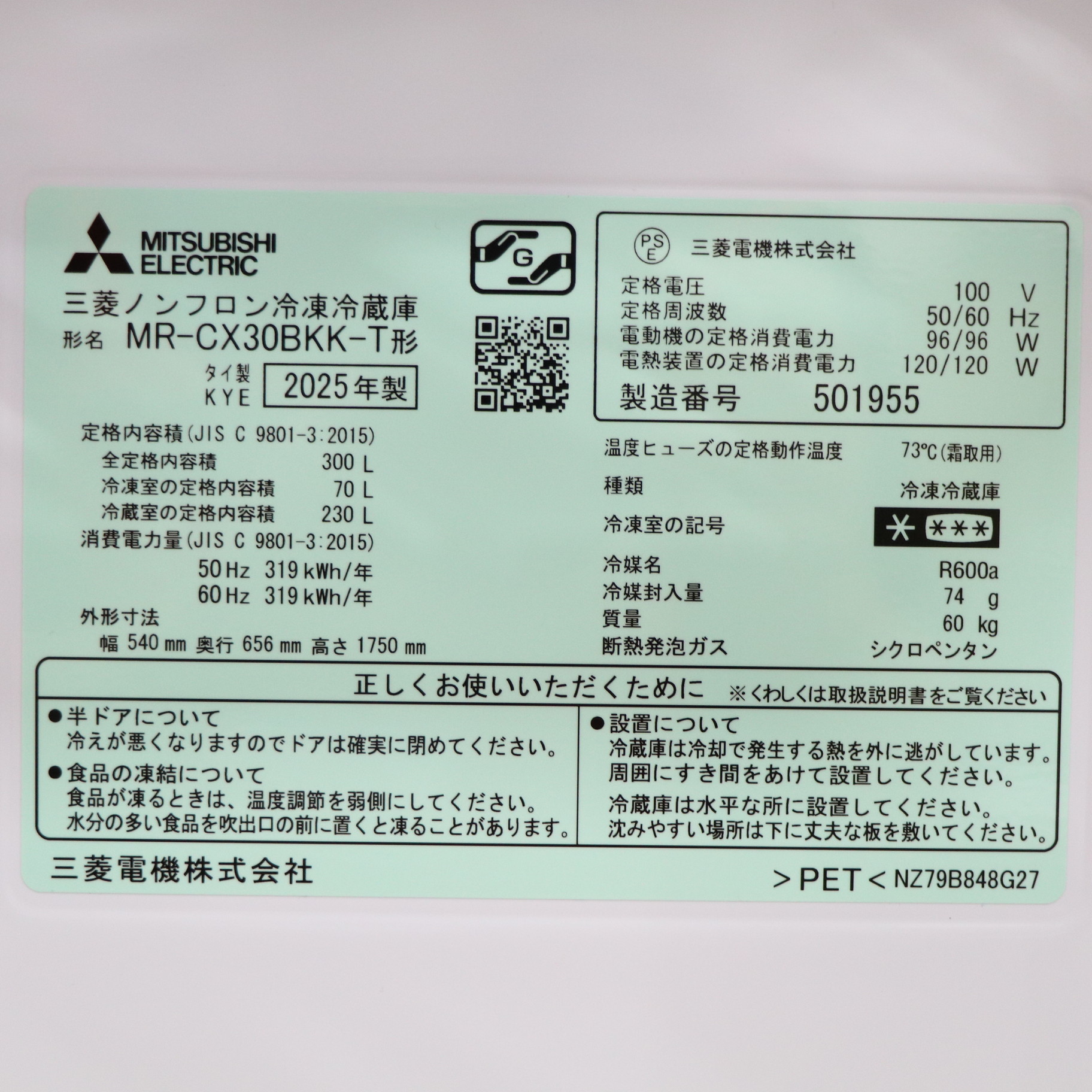 ▼同型番の新品商品はこちら![]() MITSUBISHI(三菱) 冷蔵庫 BKシリーズ ダークブラウン MR-CX30BKK-T [300 /3ドア /右開きタイプ /2024年] 【基本設置料金セット】 ¥139,800(税込) 13,980ポイントサービス 在庫限り |