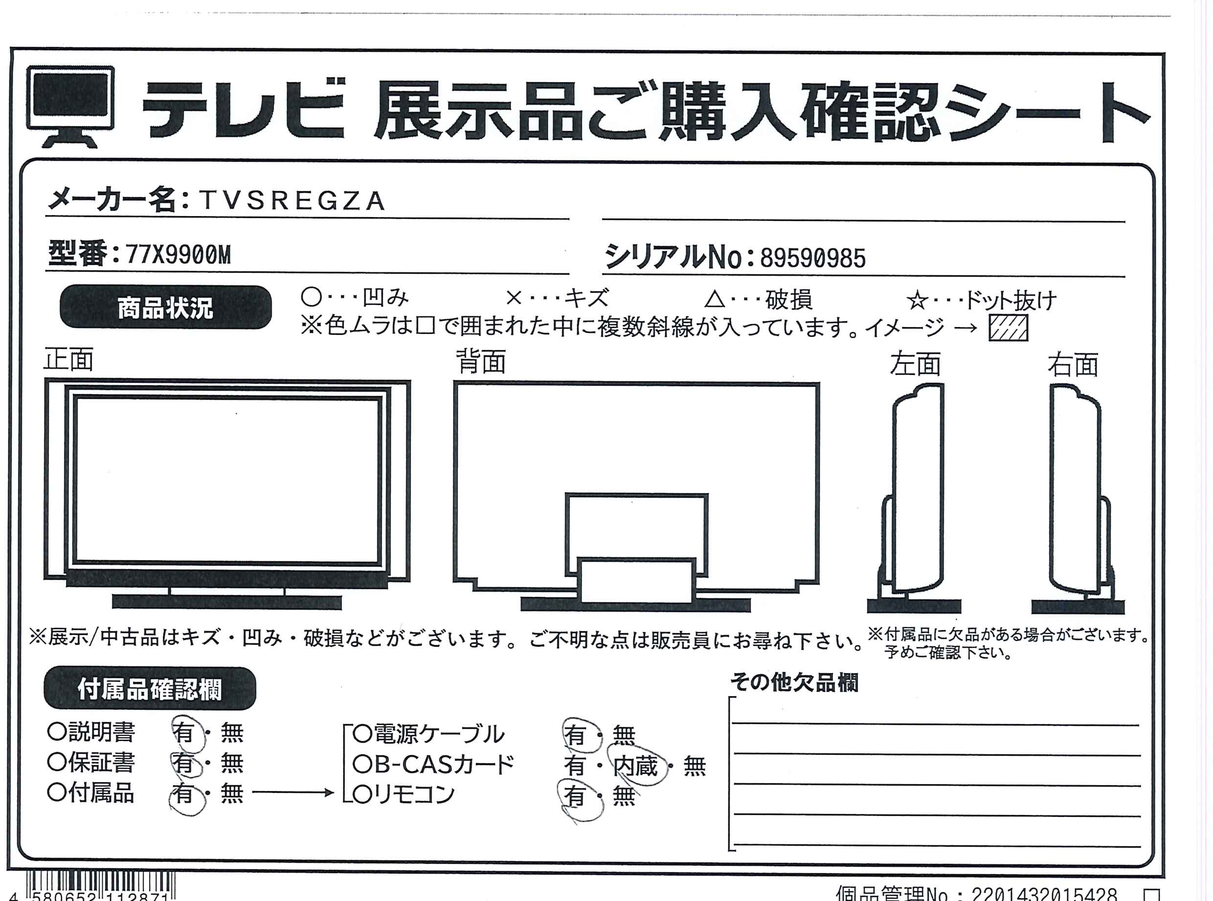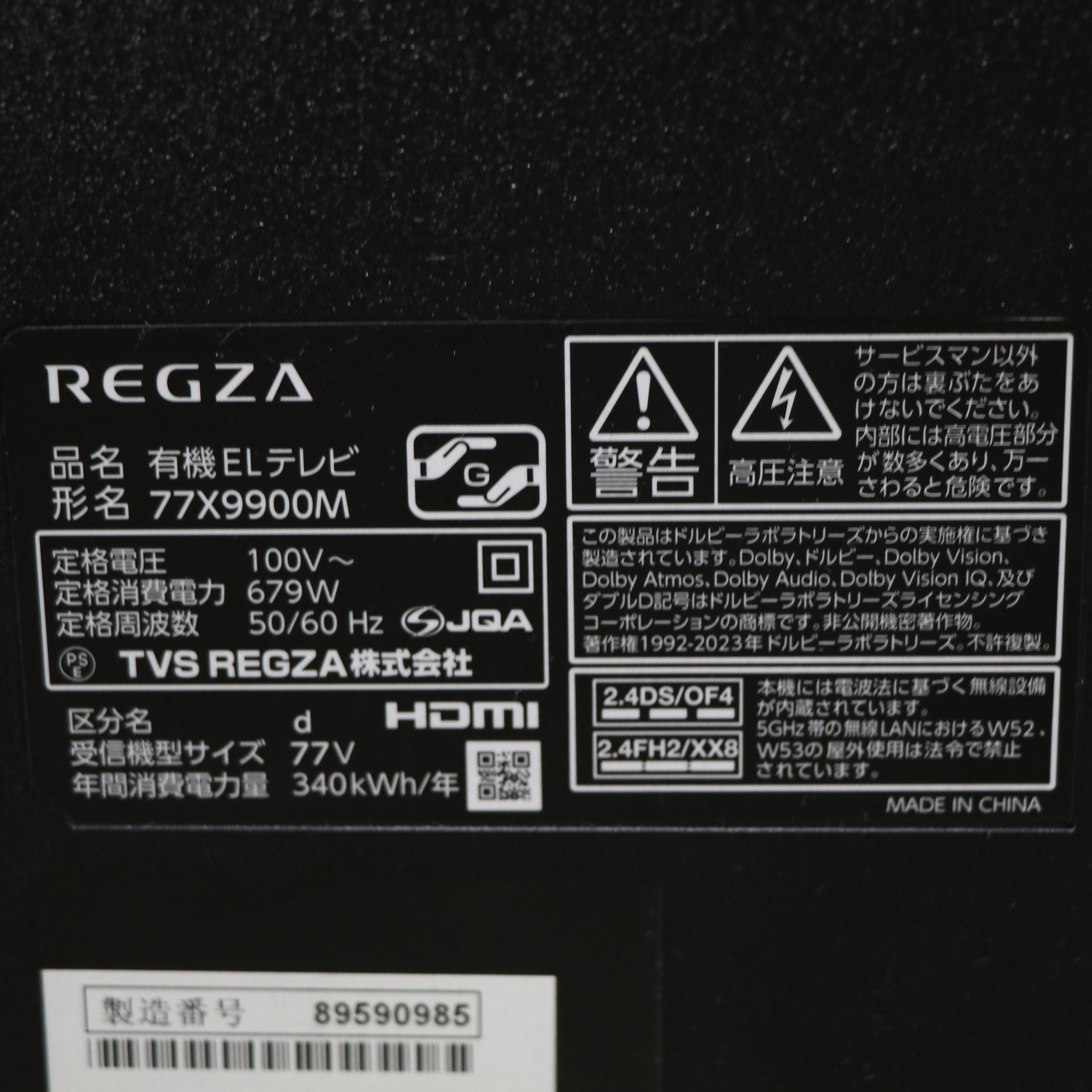 〔展示品〕 有機ELテレビ REGZA(レグザ) 77X9900M [77V型 /Bluetooth対応 /4K対応 /BS・CS 4Kチューナー内蔵 /YouTube対応]
