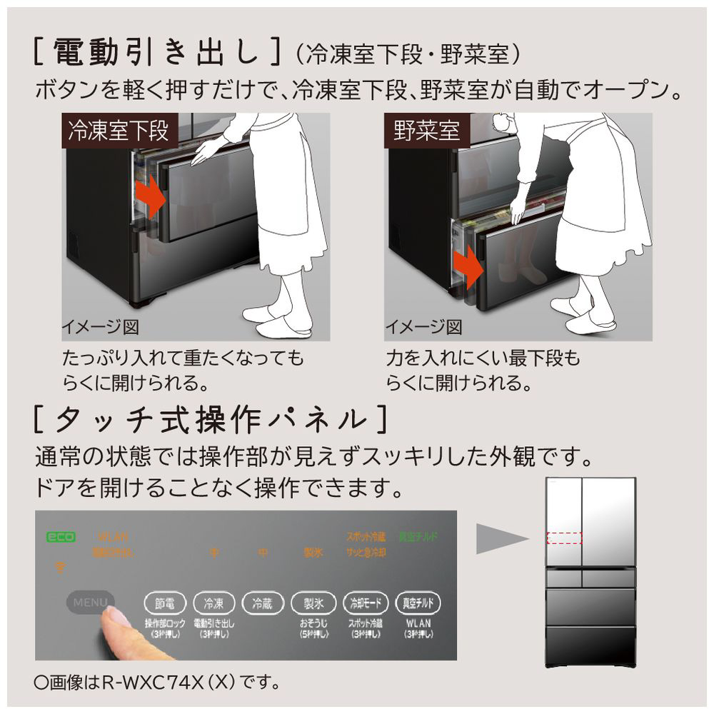 未使用品 冷蔵庫 WXCタイプ クリスタルミラー R-WXC74X-X [幅88cm /735L /6ドア /観音開きタイプ /2025年] 〔箱破損品〕