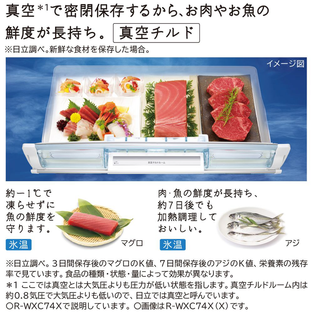 ▼同型番の新品商品はこちら![]() HITACHI(日立) 冷蔵庫 WXCタイプ クリスタルミラー R-WXC74X-X [幅88cm /735L /6ドア /観音開きタイプ /2025年] ¥415,354(税込) 4,154ポイントサービス お取り寄せ |