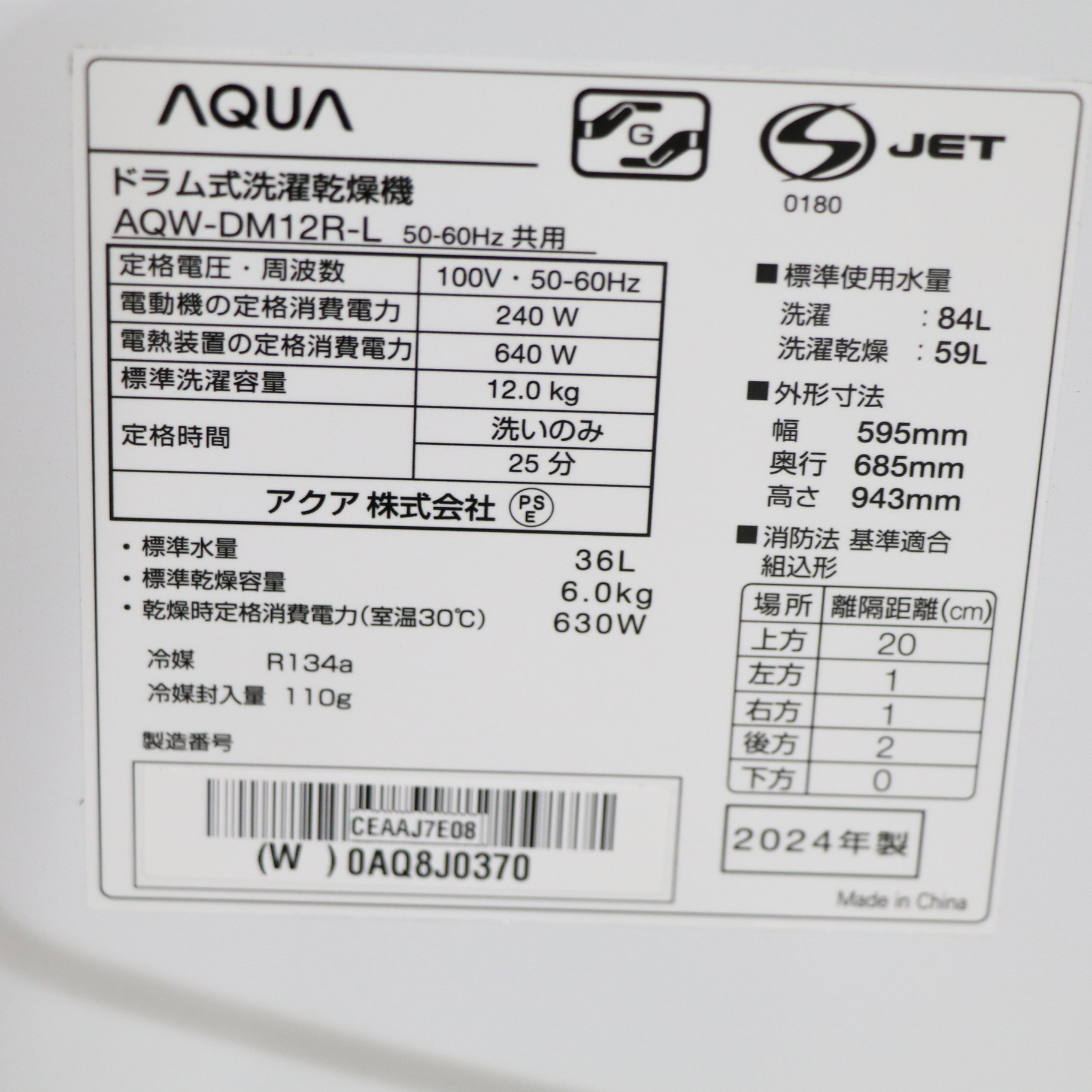 〔展示品〕 ドラム式洗濯乾燥機 AQUA ホワイト AQW-DM12R-L(W) [洗濯12.0kg /乾燥6.0kg /ヒートポンプ乾燥 /左開き]