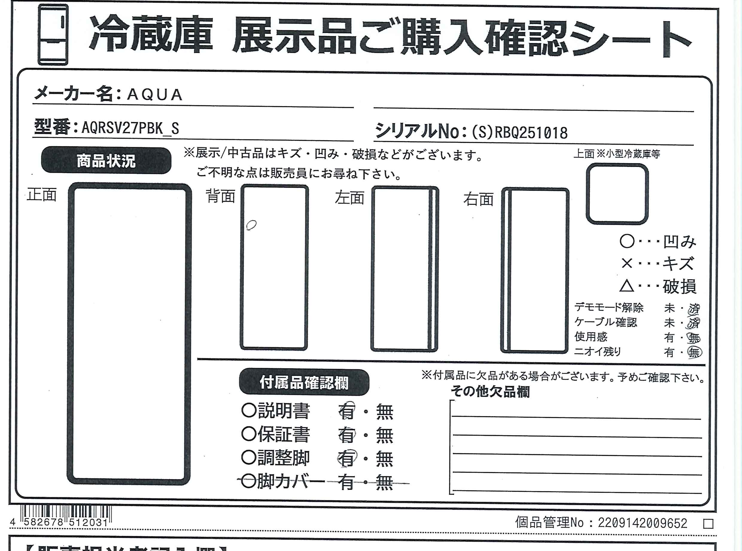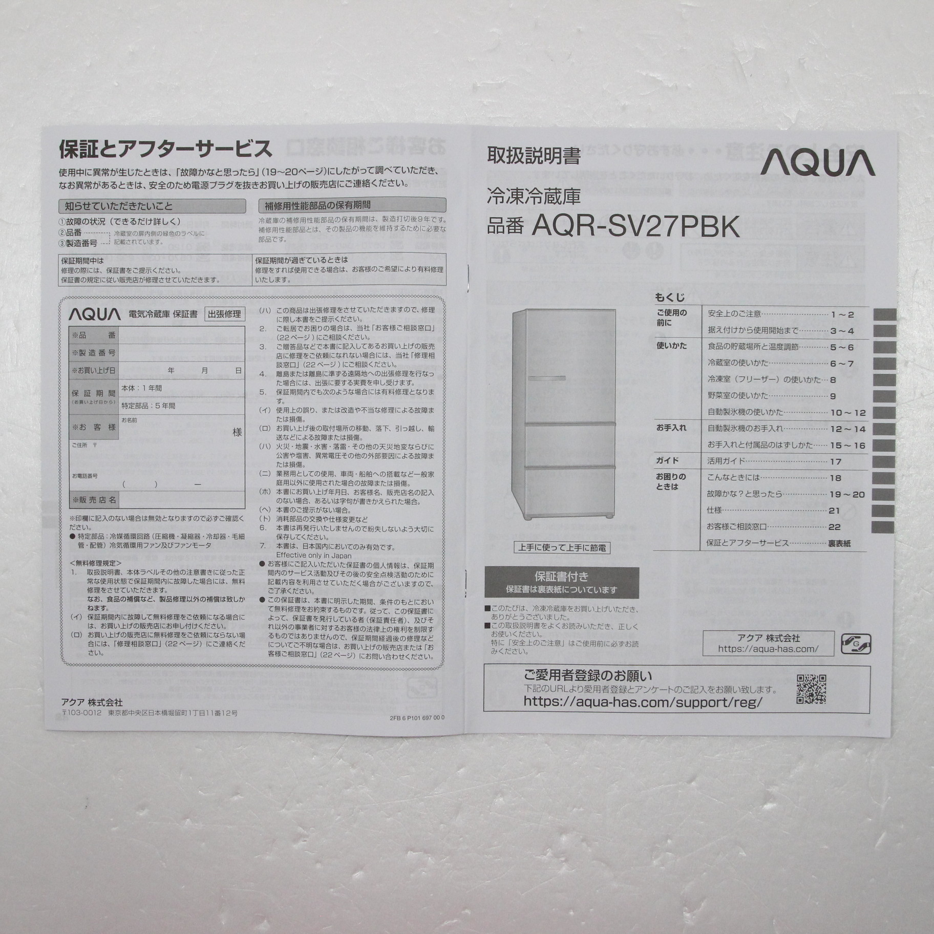 ▼同型番の新品商品はこちら![]() AQUA 冷蔵庫 ブライトシルバー AQR-SV27PBK(S) [幅60cm /272L /3ドア /右開きタイプ /2023年] 【基本設置料金セット】 ¥104,800(税込) 10,480ポイントサービス 在庫限り |
