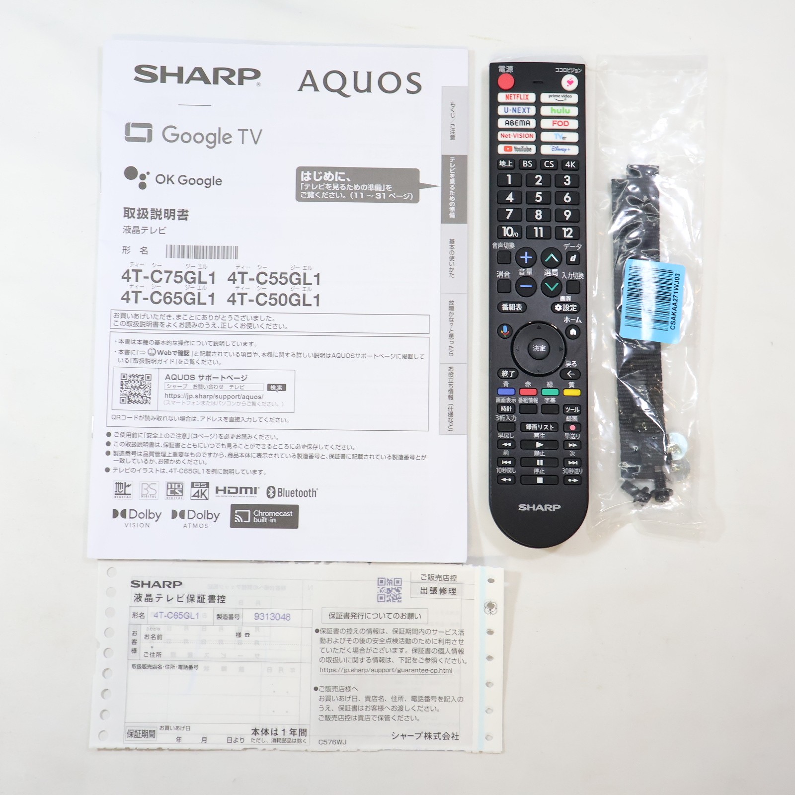 〔展示品〕 液晶テレビ AQUOS(アクオス) 4T-C65GL1 [65V型 /Bluetooth対応 /4K対応 /BS・CS 4Kチューナー内蔵 /YouTube対応]