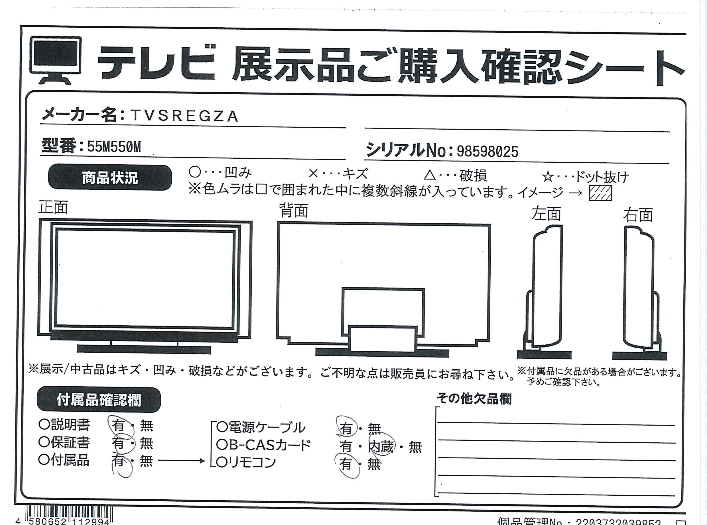 〔展示品〕 液晶テレビ REGZA(レグザ) 55M550M [55V型 /Bluetooth対応 /4K対応 /BS・CS 4Kチューナー内蔵 /YouTube対応]